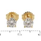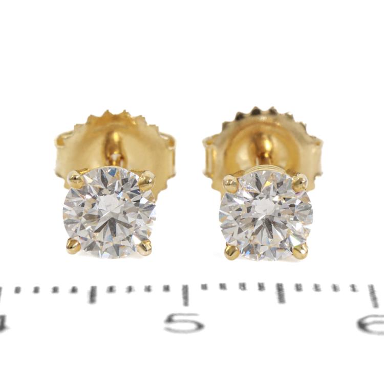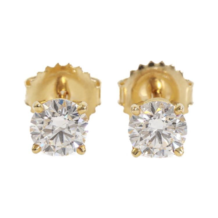 Diamond stud earrings with 2 round brilliant cut Natural Diamonds totalling 1.08ct (with GIA Summary Reports graded as G Internally Flawless# 6475850745, 2476808060). 18ct yellow gold. Weight: 0.8g. (New)
