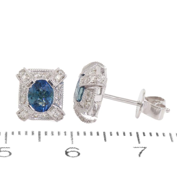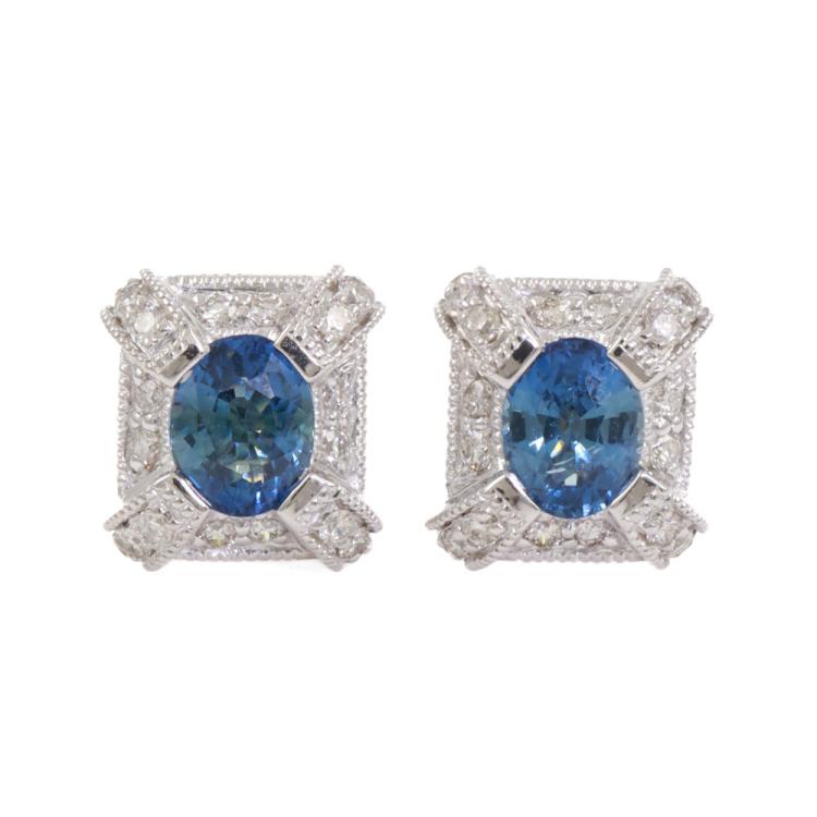 Sapphire and Diamond earrings with oval shape Natural Sapphire totalling 1.09ct and round Natural Diamonds totalling 0.26ct. 18ct white gold. Weight: 2.8g. (New)
