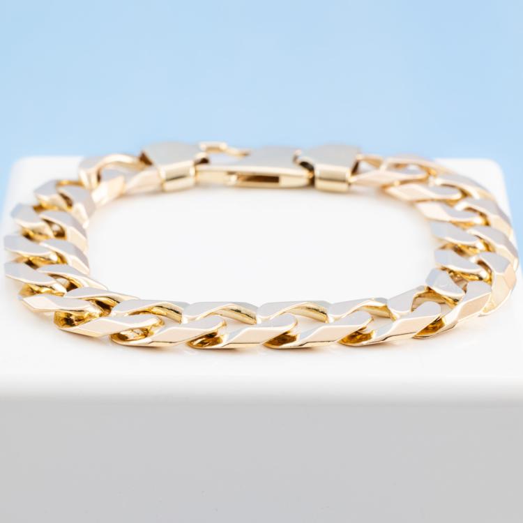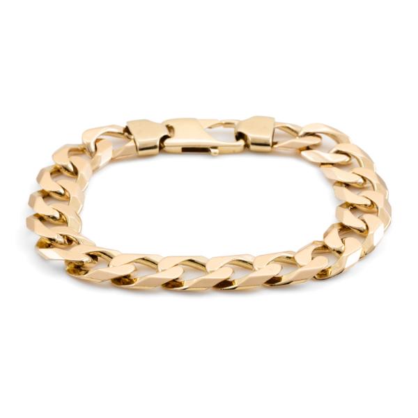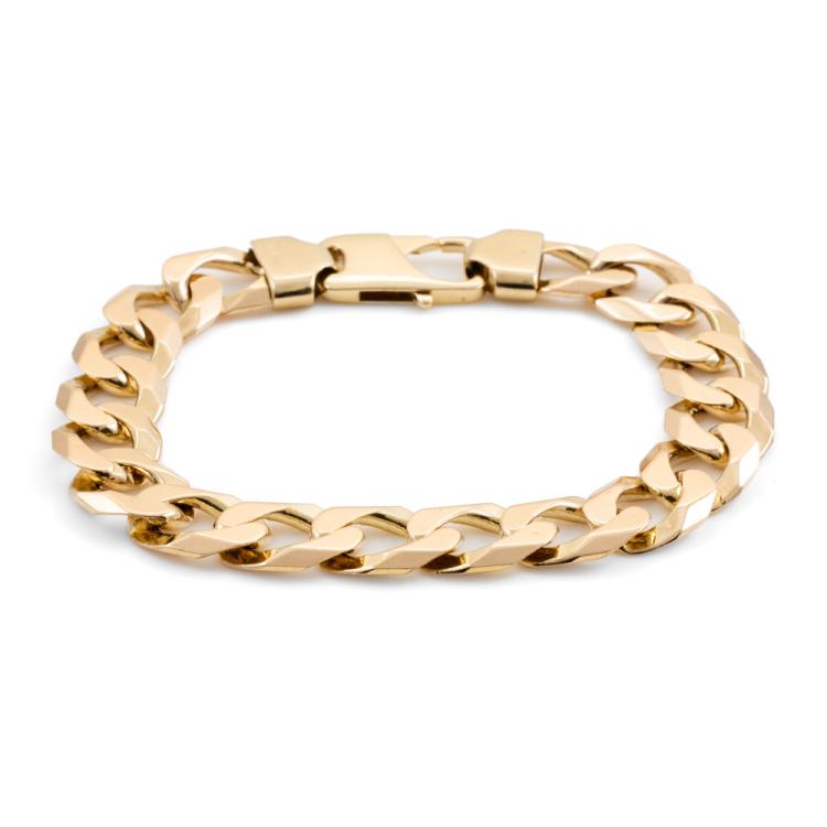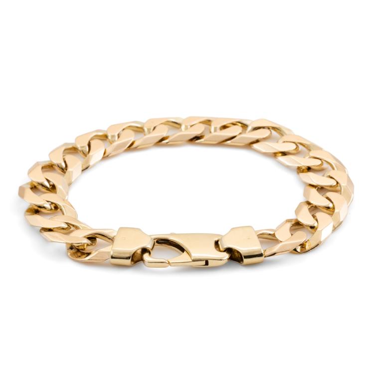 Gold curb link chain bracelet. 10ct yellow gold. Length: 22.5cm. Width: 12.7mm. Weight: 46.2g. (Pre-owned)