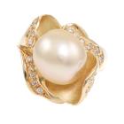 10x12.3mm South Sea Pearl & Diamond Ring