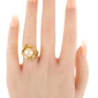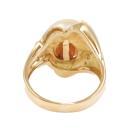 Pearl and Diamond ring with light golden South Sea Pearl of approximately 10mm x 12,3mm and round Natural Diamonds totalling 0.14ct. 18ct yellow gold. Ring size K. Band width: 3mm - 4.1mm. Weight: 7.7g. (Pre-owned)