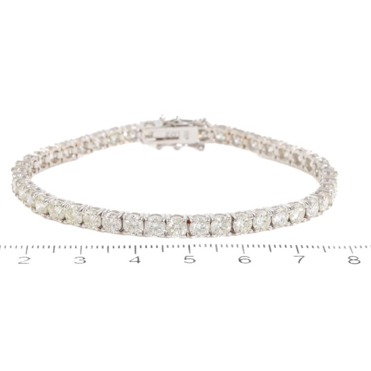 Diamond tennis bracelet with 44 round Natural Diamonds totalling 11.02ct (Estimated grading: I-J SI). 18ct white gold. Length: 18cm. Weight: 13.9g. With Certificate #419549. (New)