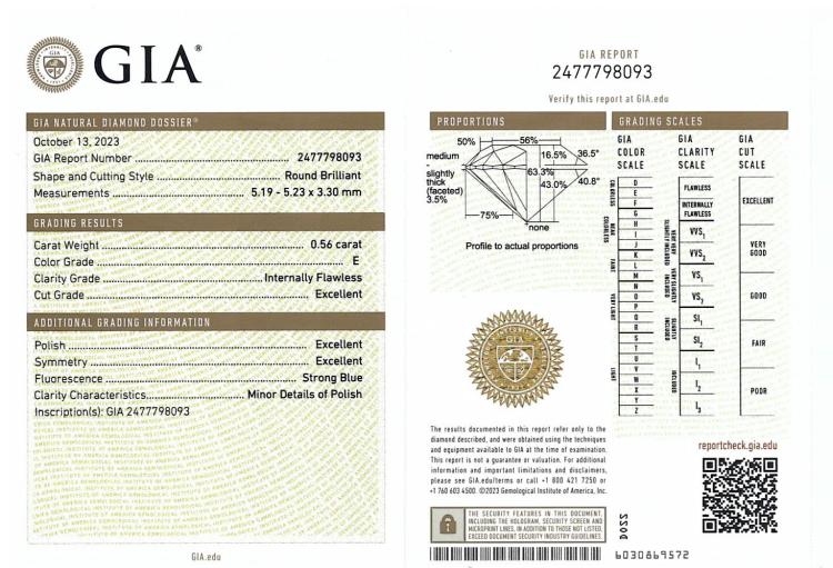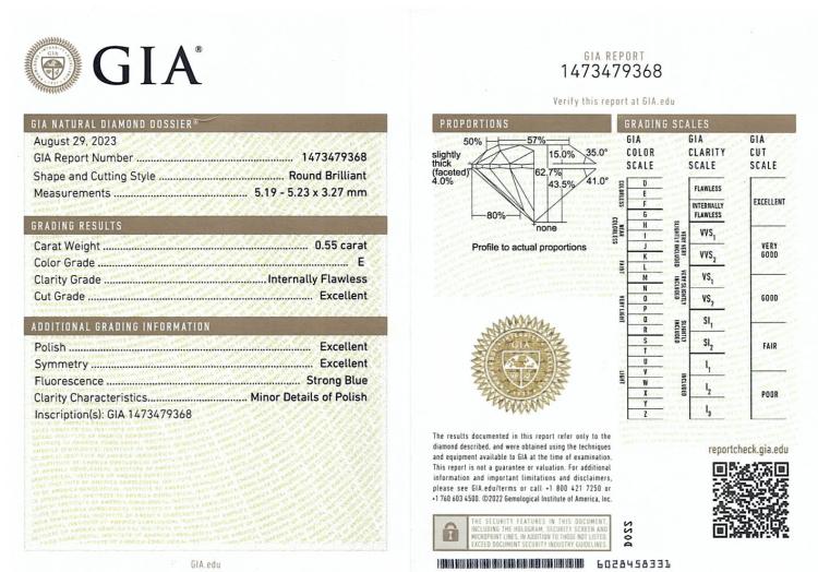 Diamond stud earrings with 2 round brilliant cut Natural Diamonds totalling 1.11ct (with GIA Summary Reports graded as E Internally Flawless #1473479368, 2477798093). 18ct yellow gold. Weight: 1.6g. (New)