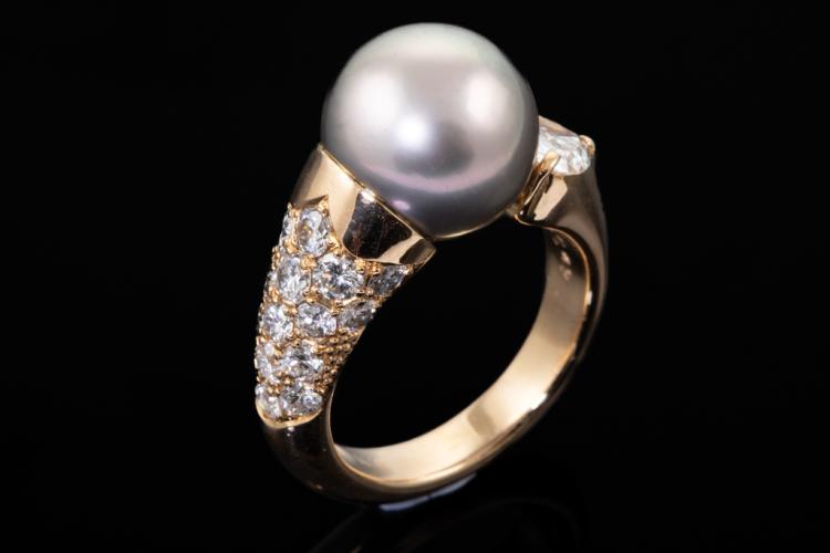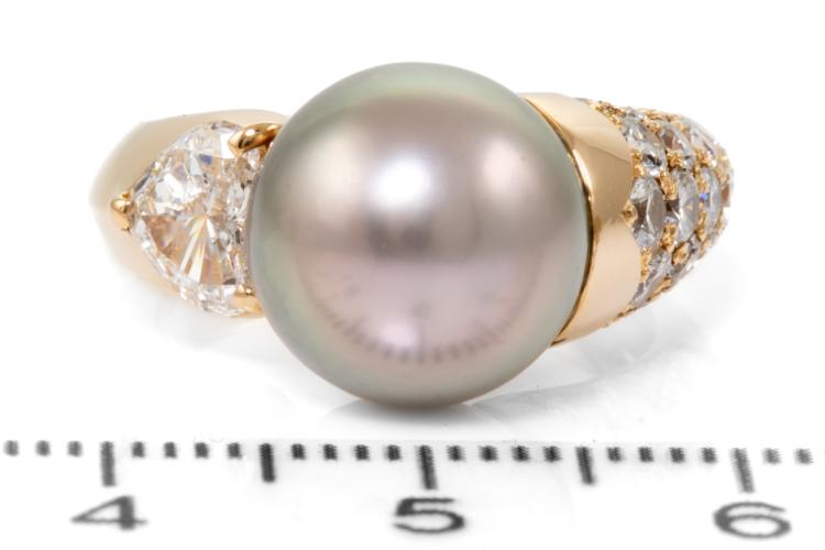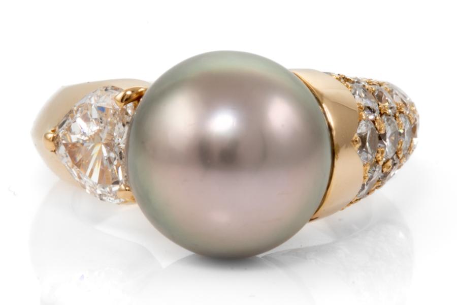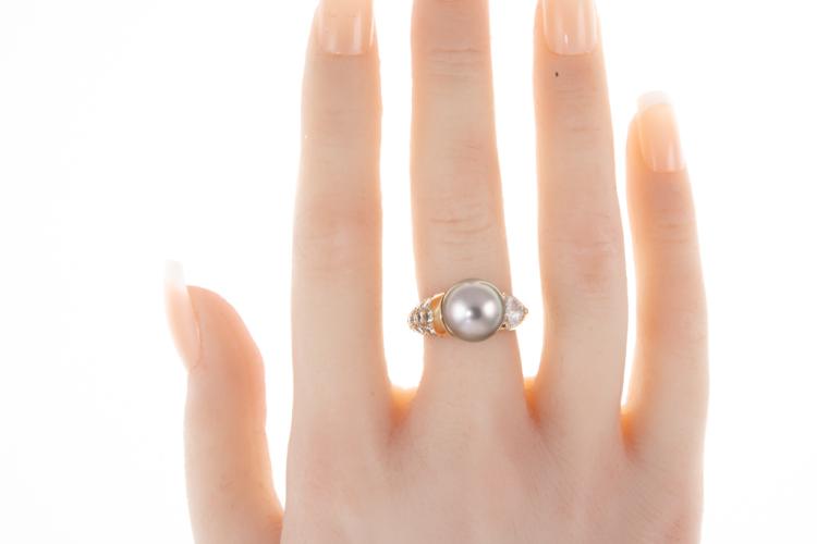 11.1mm Tahitian Pearl & Diamond Ring