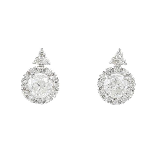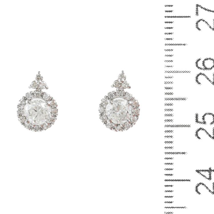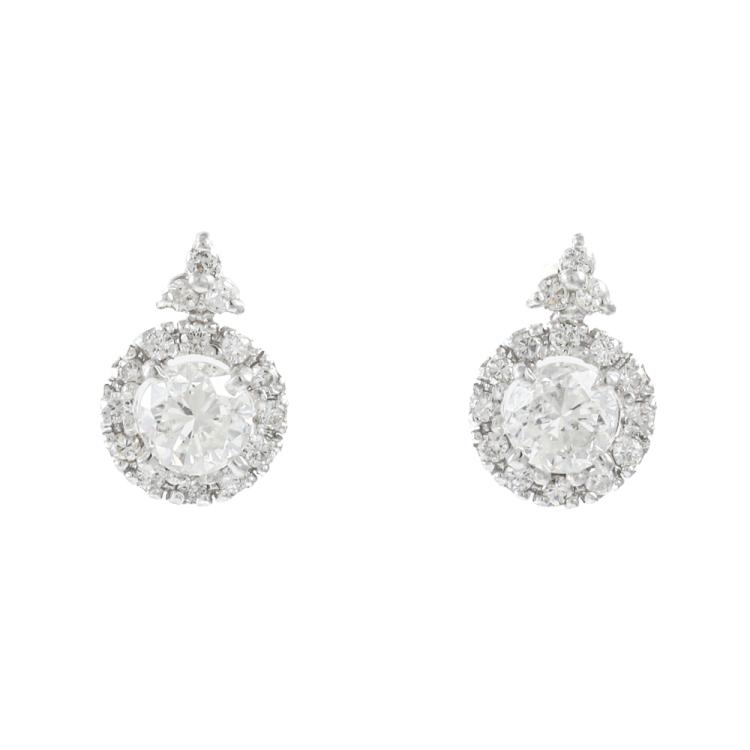 Diamond earring with centre round Natural Diamonds totalling 0.86ct (Estimated grading: H-I SI2) and rest round Natural Diamonds totalling 0.26ct. 18ct white gold with silicon backs. Weight: 1.7g. (Pre-owned)