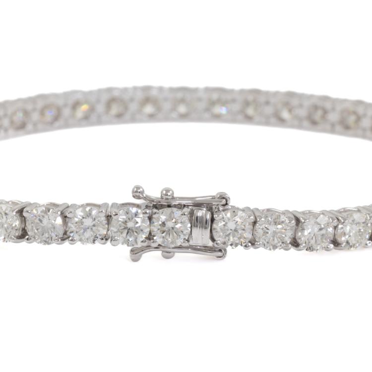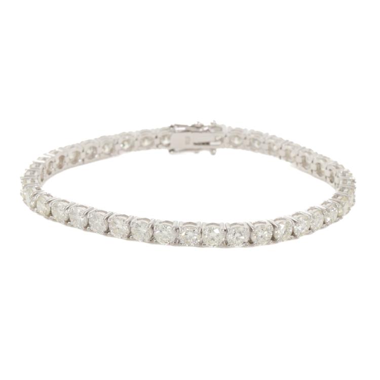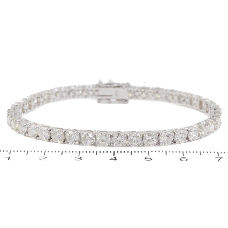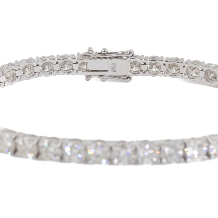 Diamond tennis bracelet with 40 round brilliant cut natural Diamonds totalling 11.99ct (Estimated grading: I-J SI). 18ct white gold. Length: 18cm. Weight: 15.9g. With Valuation Certificate #418688. (New)