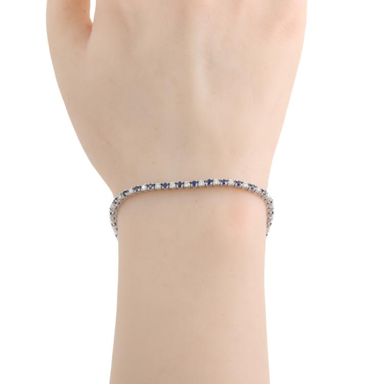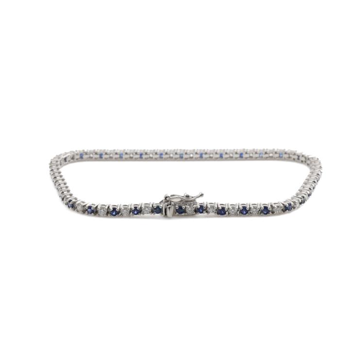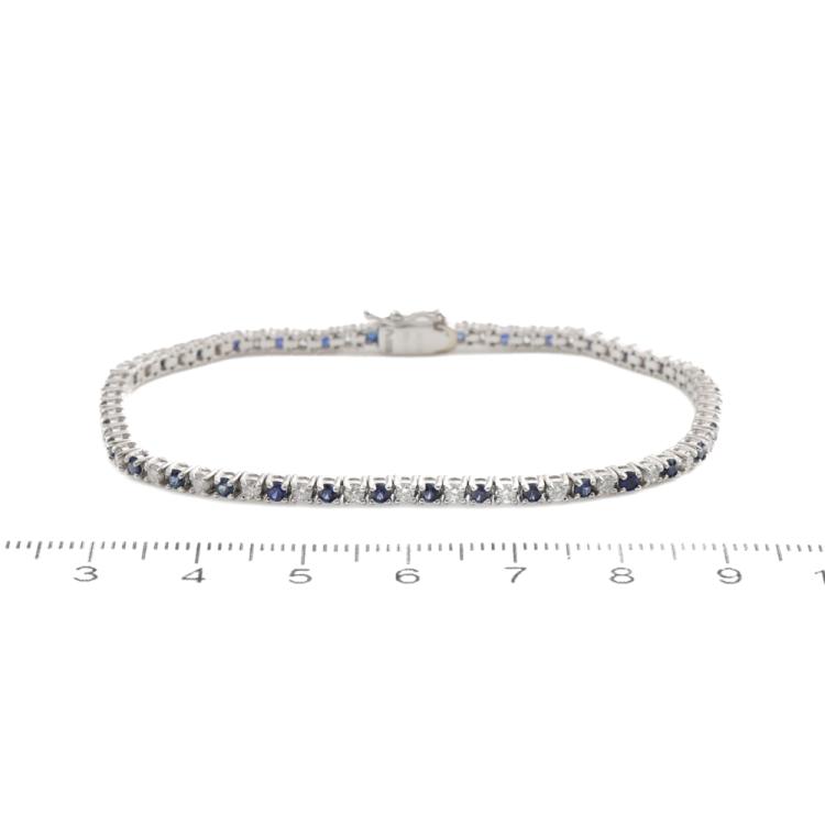 Sapphire and Diamond bracelet with round natural Blue Sapphires totalling 1.26ct and round Natural Diamonds totalling 1.00ct (Estimated Grading: G-H VS-SI). Platinum-850. Length: 17cm. Weight: 10.0g. (Pre-owned)