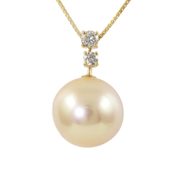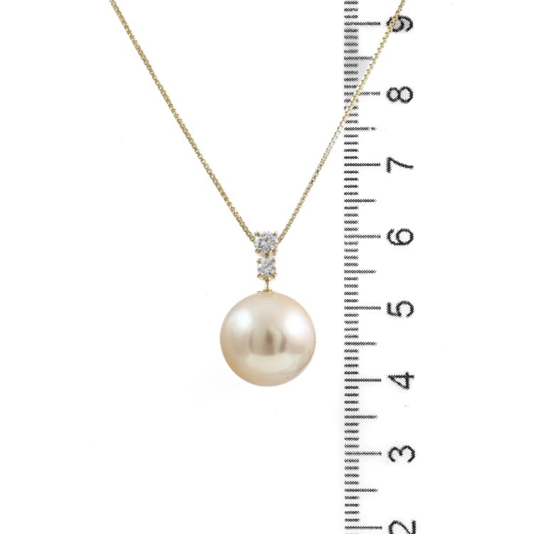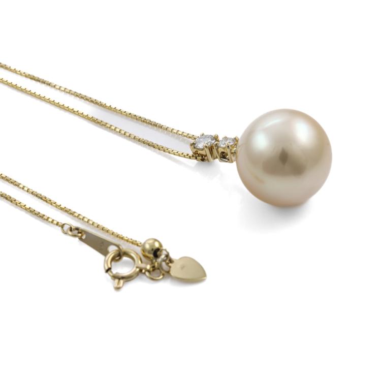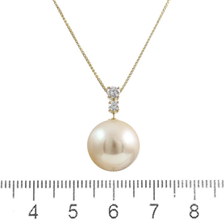 Pearl and Diamond pendant with Golden South Sea Pearl of 13.1mm and round Natural Diamonds totalling 0.18ct. 18ct yellow gold with 45cm 18ct yellow gold adjustable chain. Weight: 5.8g. (Pre-owned)