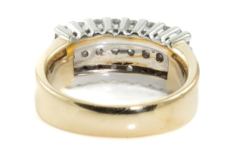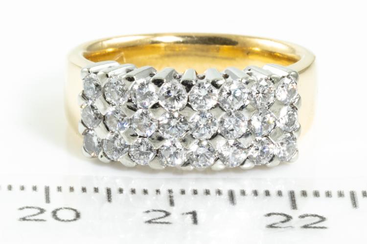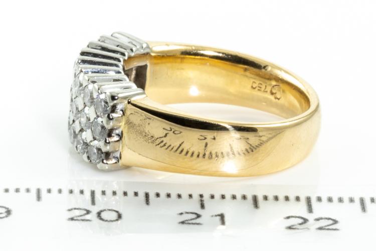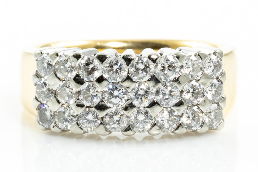 Diamond dress ring with round Natural Diamonds totalling approximately 1.45ct (Estimated grading: G SI). 18ct yellow & white gold. Ring size N1/2. Weight: 11.5g. (Pre-owned)