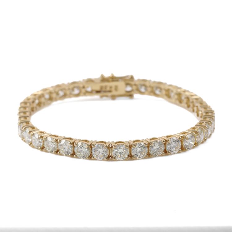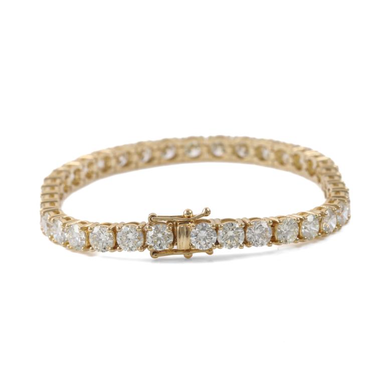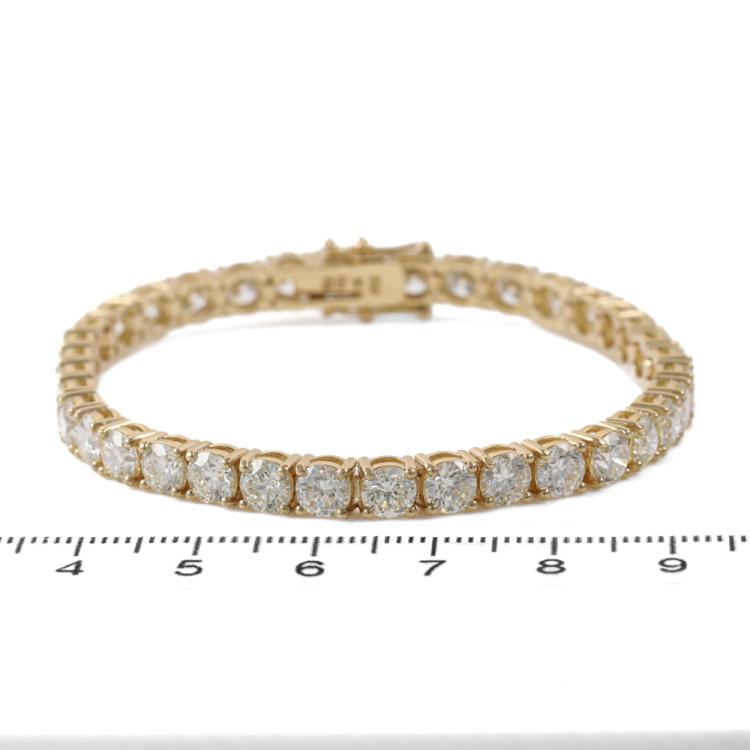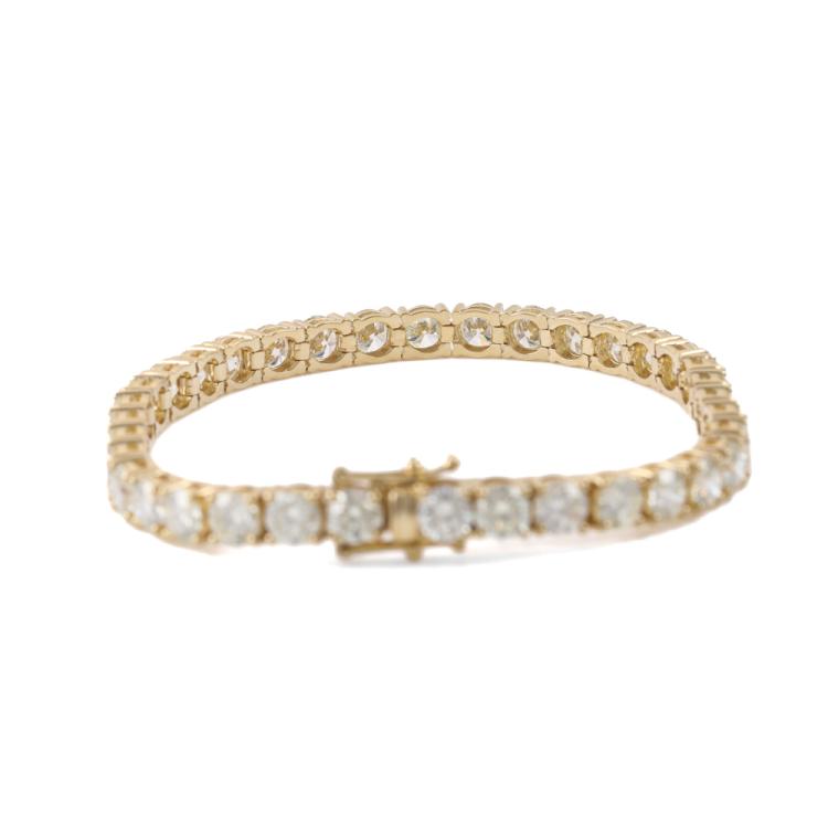 Diamond tennis bracelet with 36 round Natural Diamonds totalling 14.78ct (Estimated grading: J-K SI). 18ct yellow gold. Length: 18cm. Weight: 19.2g. With Valuation Certificate #419518. (New)