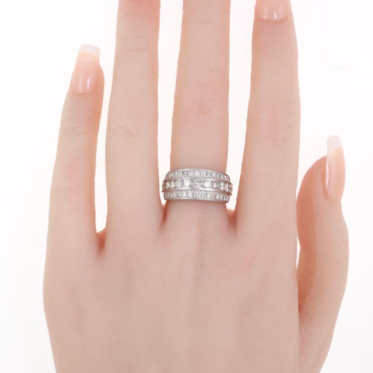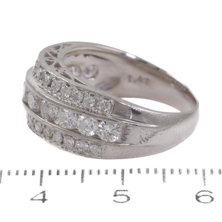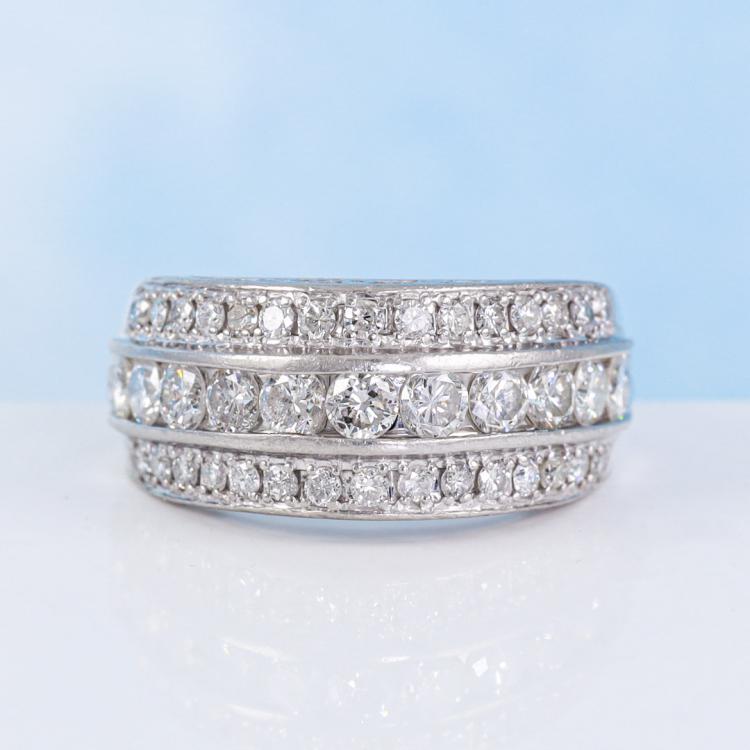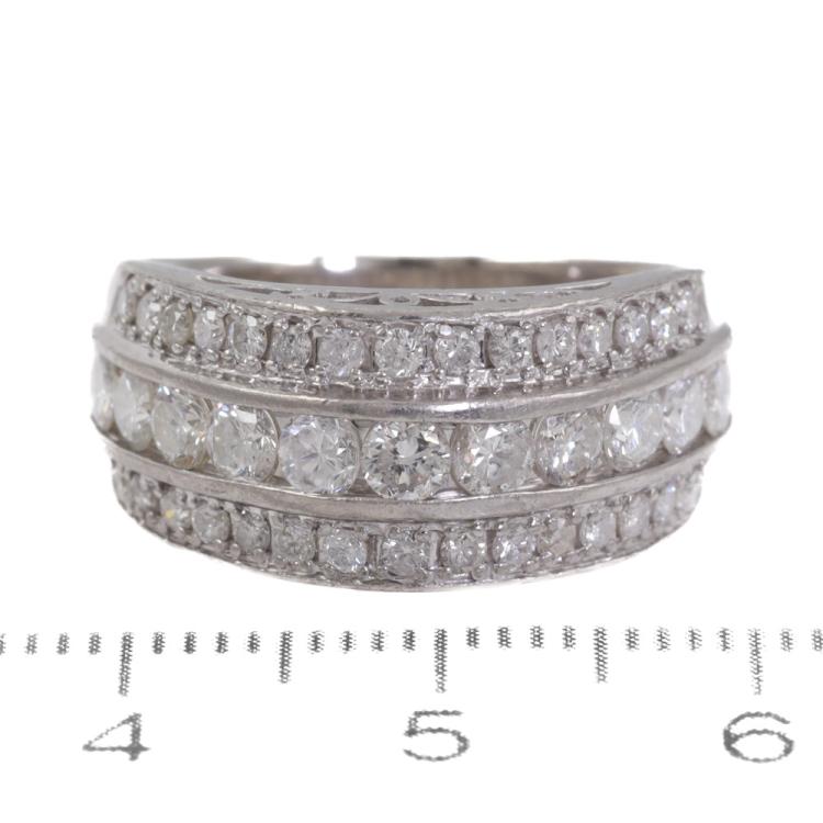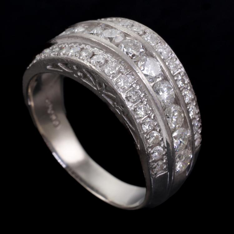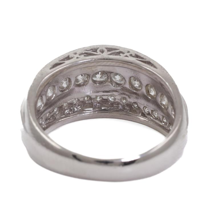 Diamond ring with round Natural Diamonds totalling 1.47ct. (Estimated grading: H SI-P1). Platinum - 900. Ring size: M 1/2. Band width: 3.5mm-7.2mm. Weight: 9.3g. (Pre-owned)