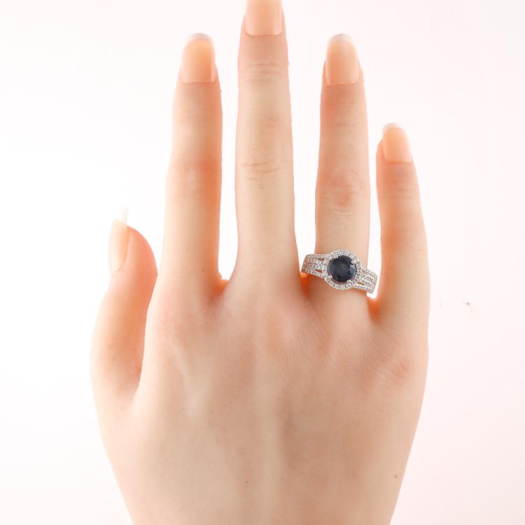 1.50ct Dark Blue Sapphire and Diamond Ring