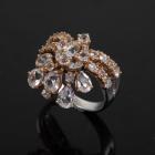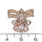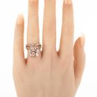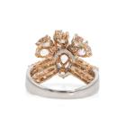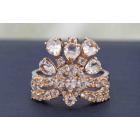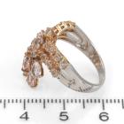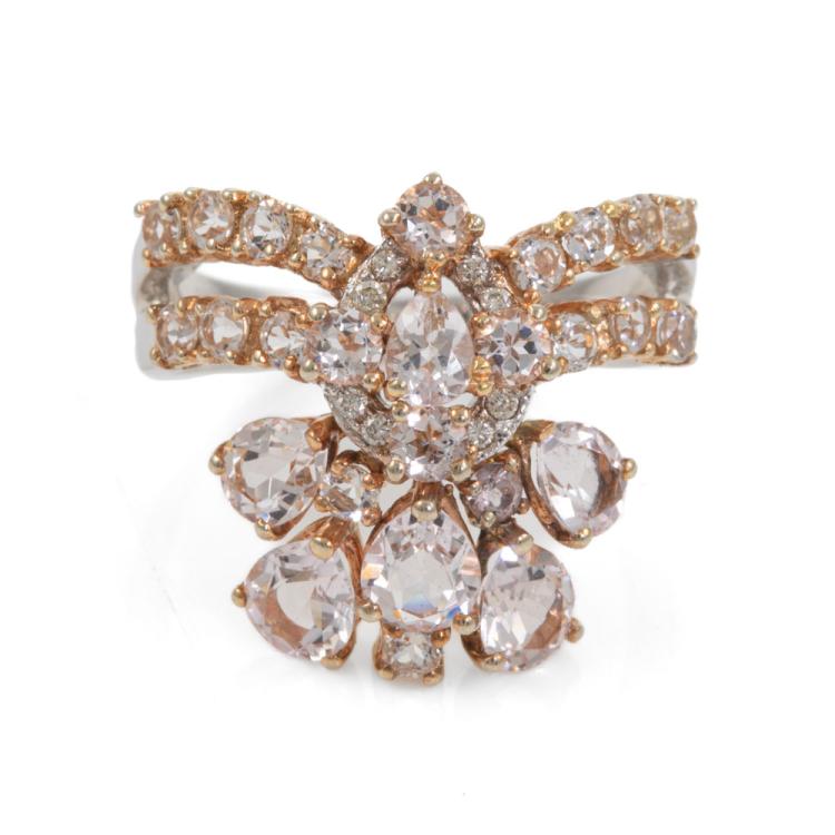 Morganite and Diamond ring with round & pear shape natural Morganite totalling approximately 1.50ct and round natural Diamonds totalling 0.05ct. 18ct yellow and white gold. Ring size K - ring resizing is not recommended. Band width: 2.4mm -4.4mm. Weight: 4.6g. (Pre-owned)