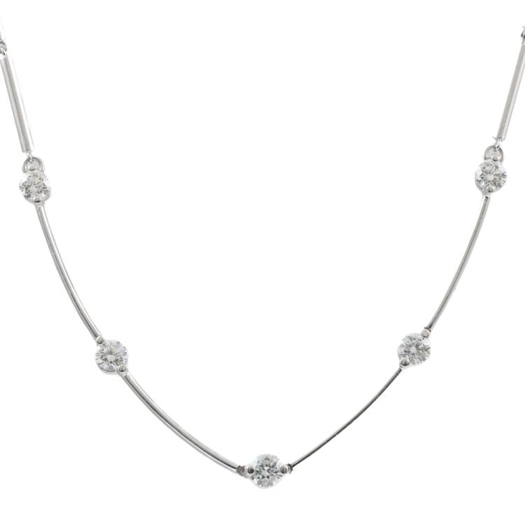 Diamond necklace with 5 round Natural Diamonds totalling 1.56ct (Estimated grading: I-J VS-SI). Platinum 900 & platinum 850 chain. Length: 42cm. Weight: 16.8g. (Pre-owned)