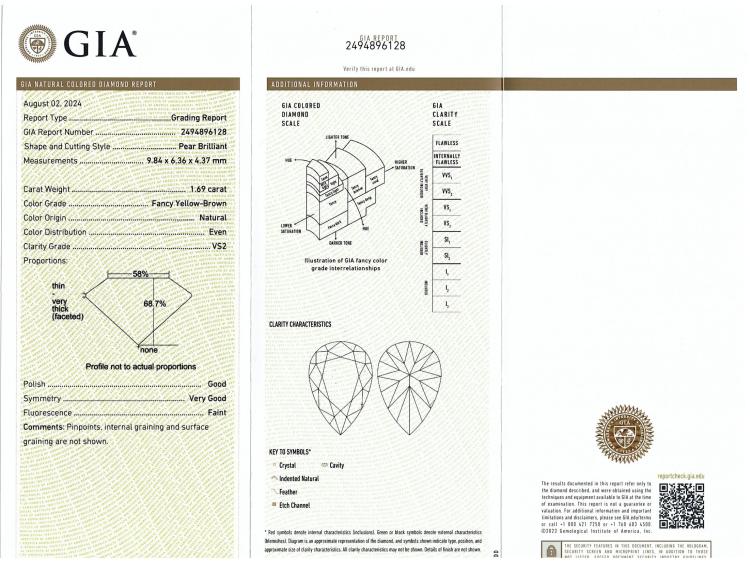 1.69ct Diamond GIA Yellow-Brown GIA VS2