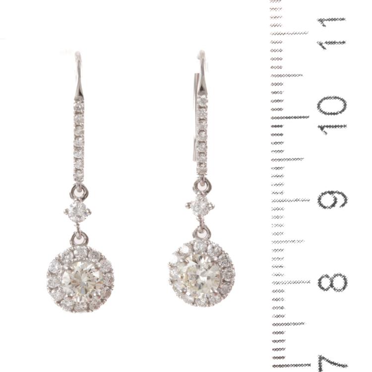 Diamond shepherd hook drop earrings with round Natural Diamonds totalling 1.70ct. (Estimated grading: J VS-SI2 & G VS) Platinum-900. Weight: 4.7g ( Pre-owned)