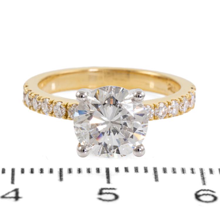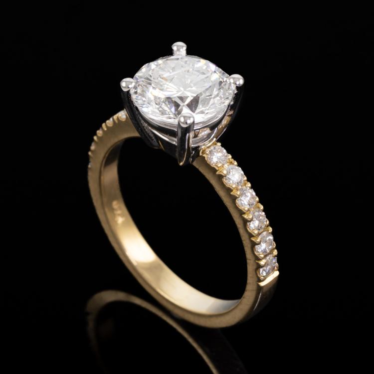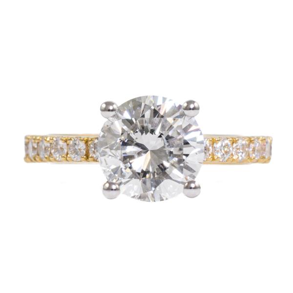 Diamond solitaire ring with round brilliant cut Natural Diamond of 2.00ct (with GIA report graded as F P1 #1493308426) and surrounding round Natural diamonds totalling 0.31ct (Estimated grading: G SI) . 18ct yellow and white gold. Ring size: K. Band width: 2.55mm-2.0mm. Weight: 4.6g. (New)
