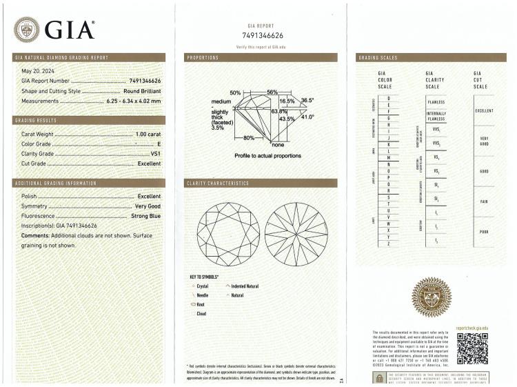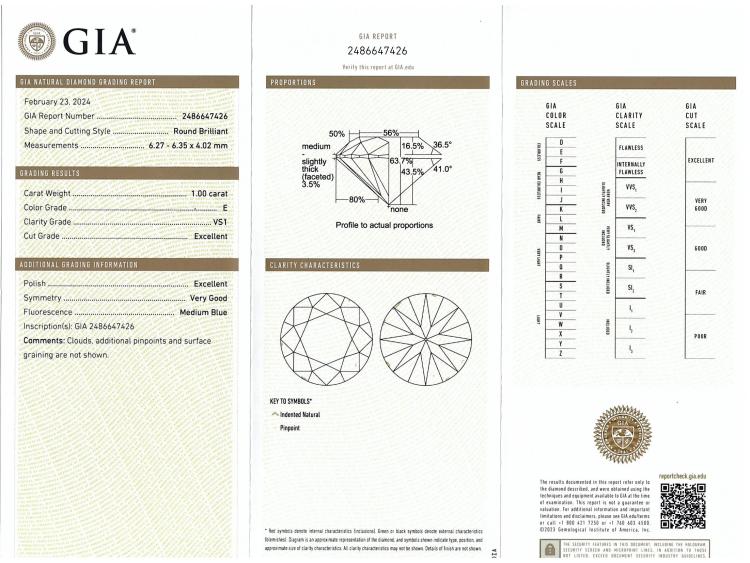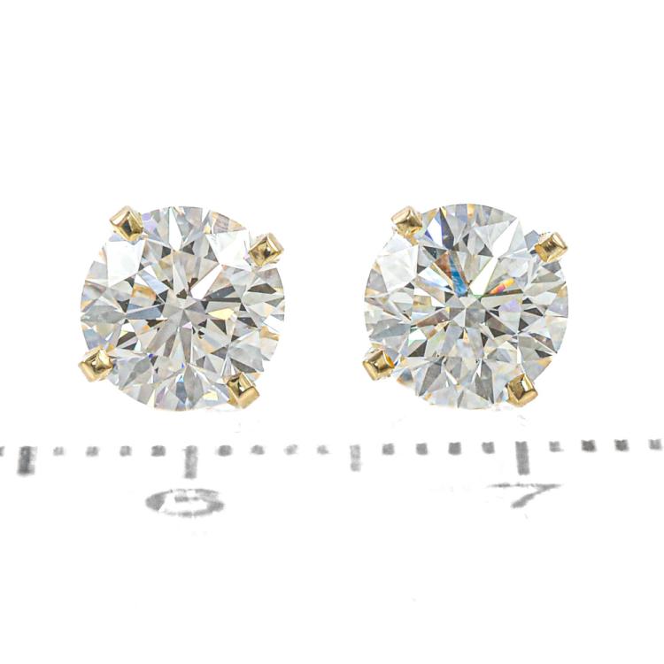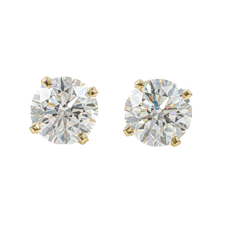 Diamond stud earrings with 2 round brilliant cut Natural Diamonds totalling 2.00ct (with GIA Reports graded as E VS1 #2486647426, 7491346626). 18ct yellow gold. Weight: 1.6g. (New)