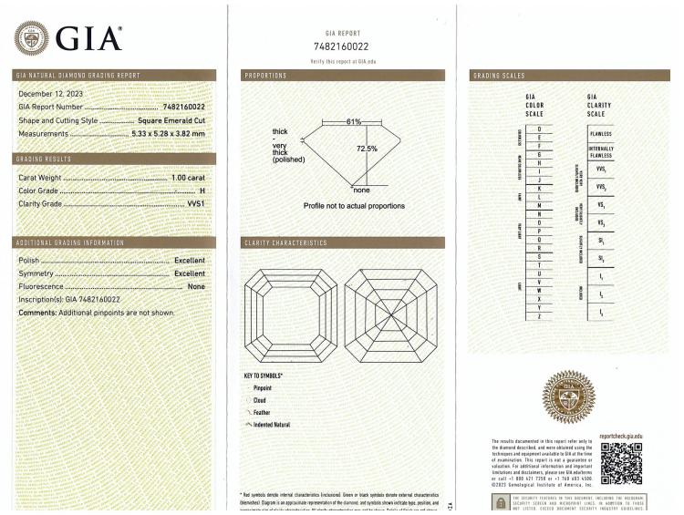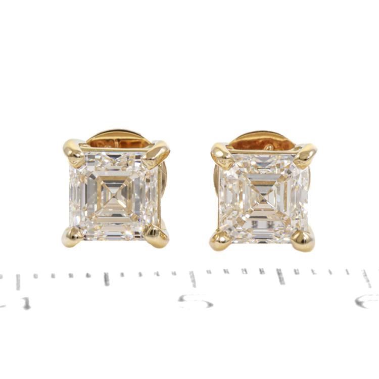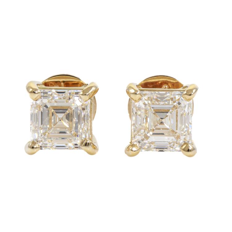 Diamond stud earrings with 2 square emerald cut Natural Diamonds totalling 2.00ct (both with GIA Reports graded as G VVS2 & H VVS1 #1489493418, 7482160022