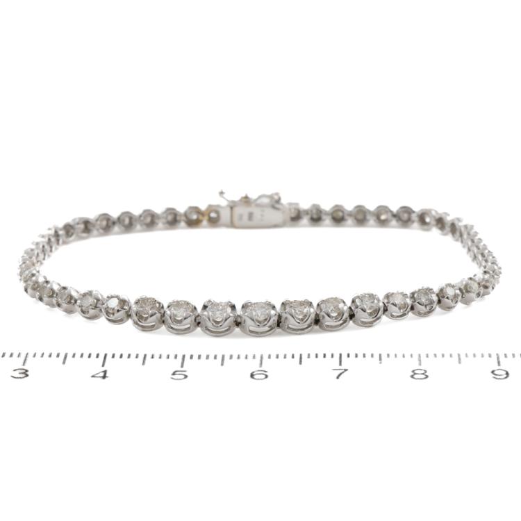 Diamond Tennis bracelet with50 graduated round Natural Diamonds totalling 2.00ct (Estimated Grading: I-J SI-P1). 18ct white gold. Length: 18.5cm. Weight: 10.0g. (Pre-owned)