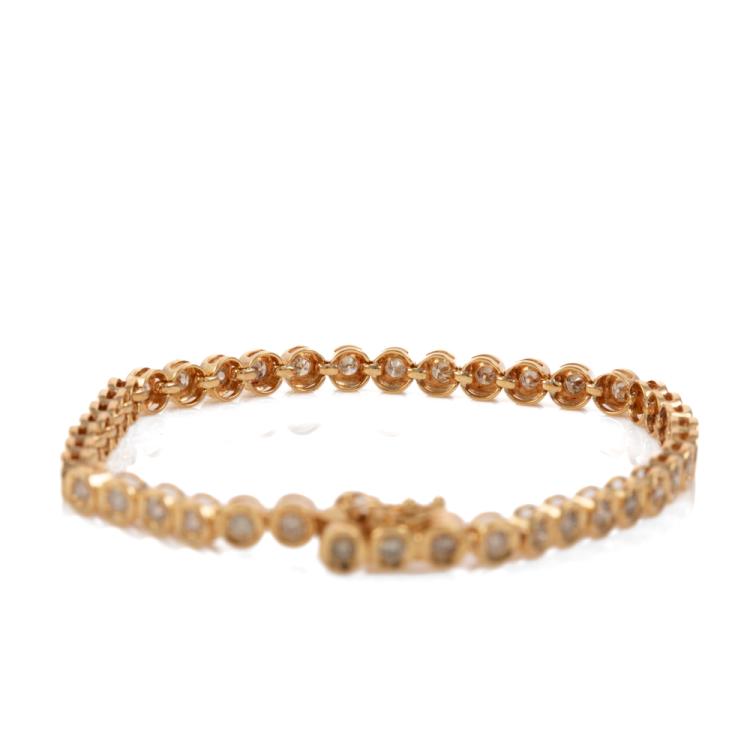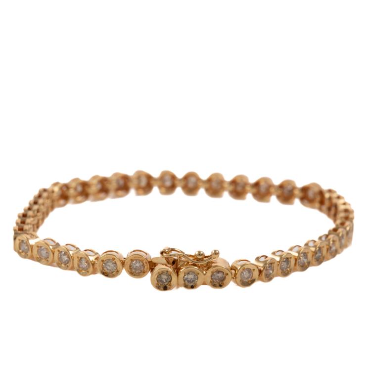 Diamond Tennis bracelet with round Natural Diamonds totalling 2.00ct (Estimated grading: H-I SI). 18ct yellow gold. Length: 18cm. Weight: 9.8g. (Pre-owned)