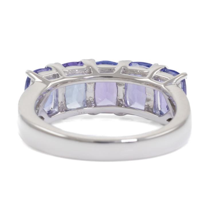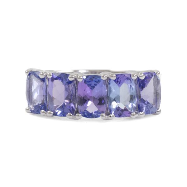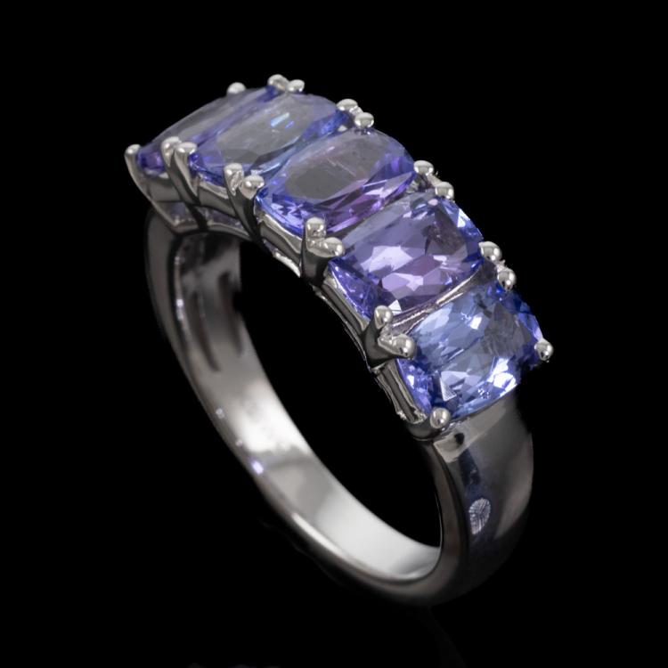 Tanzanite ring with 5 cushion cut natural Tanzanite's totalling 2.00ct. 18ct White gold. Ring size: I . Band Width: 2.6mm - 4.5mm. Weight: 5.2g. (Pre-owned)