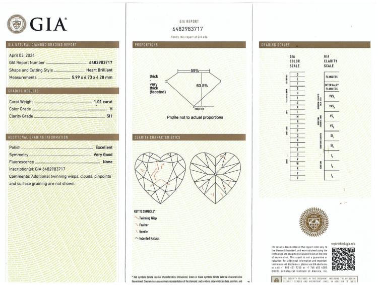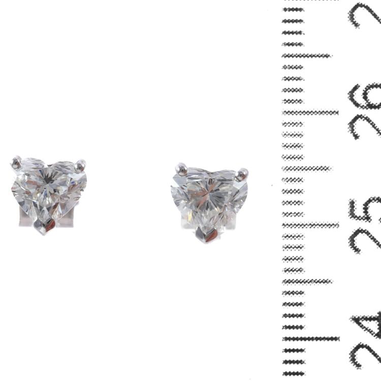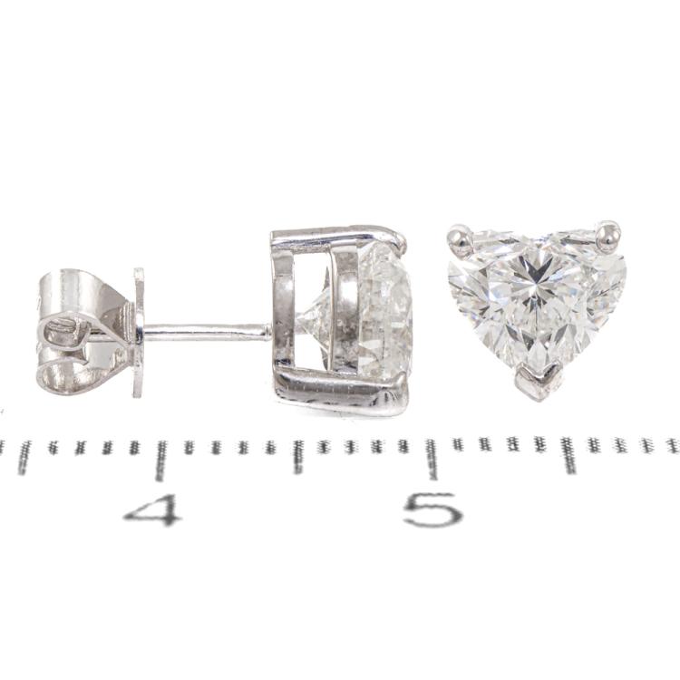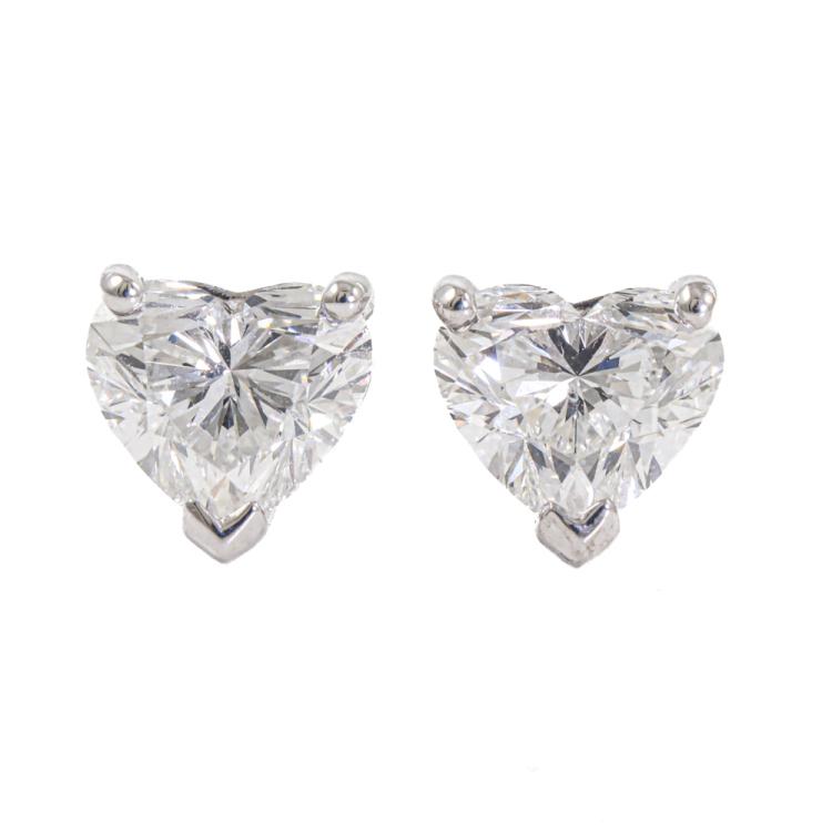 Diamond stud earrings with 2 heart shape natural Diamonds totalling 2.02ct (with GIA Reports graded as G SI1 #6495545642 & H SI1 #6482983717). 18ct white gold. Weight: 2.6g (New)