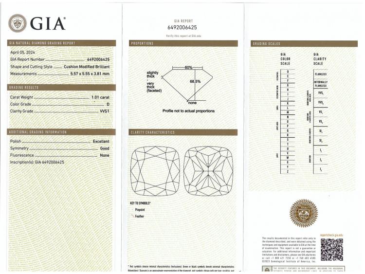 A loose pair of cushion cut Natural Diamonds totalling 2.02ct (both with GIA reports graded as D VVS1 & D VVS2# 64920006425, 7506260963). (New)