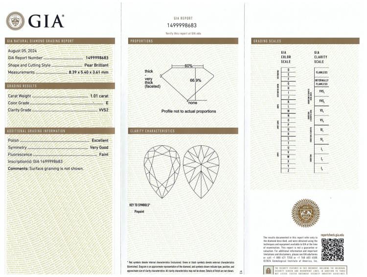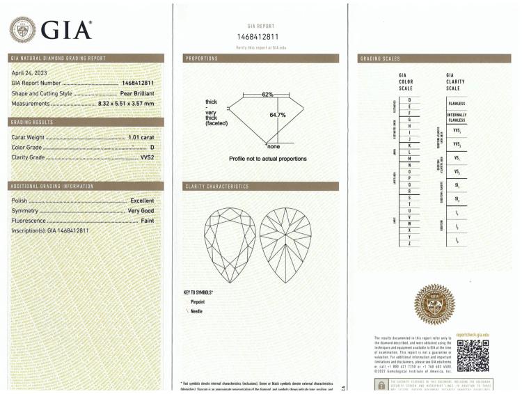 A pair of loose pear shape Natural Diamonds totalling 2.02ct (both with GIA reports graded as D VVS2 #1468412811 & E VVS2 #1499998683). (New)