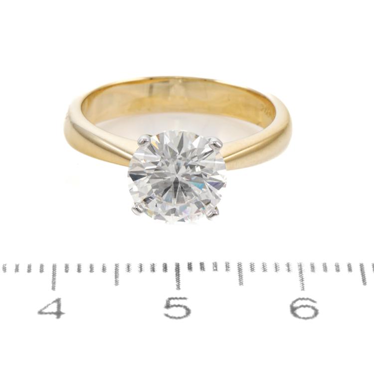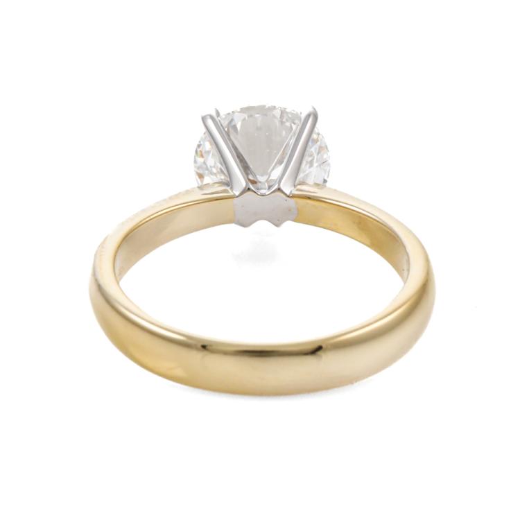 Diamond solitaire ring with round brilliant cut Natural Diamond of 2.04ct (With GIA Report graded as D SI1 #12554312). 18ct yellow and white gold. Ring size M. Band width 3.4mm - 2mm. Weight 4.6g. (New)