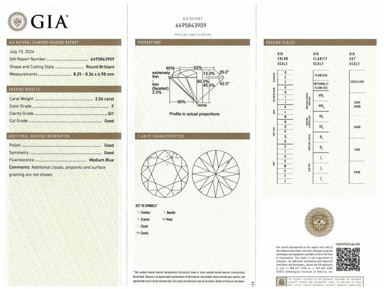 2.06ct Diamond Solitaire Ring GIA F SI1