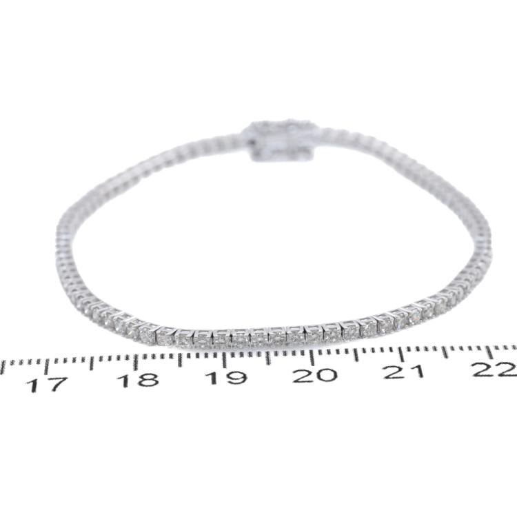 Diamond tennis bracelet with 87 round Natural Diamonds totalling 2.28ct (Estimated grading: H SI). 14ct white gold. Length: 18cm. Weight: 5.5g. With Certificate #419931. (New)