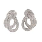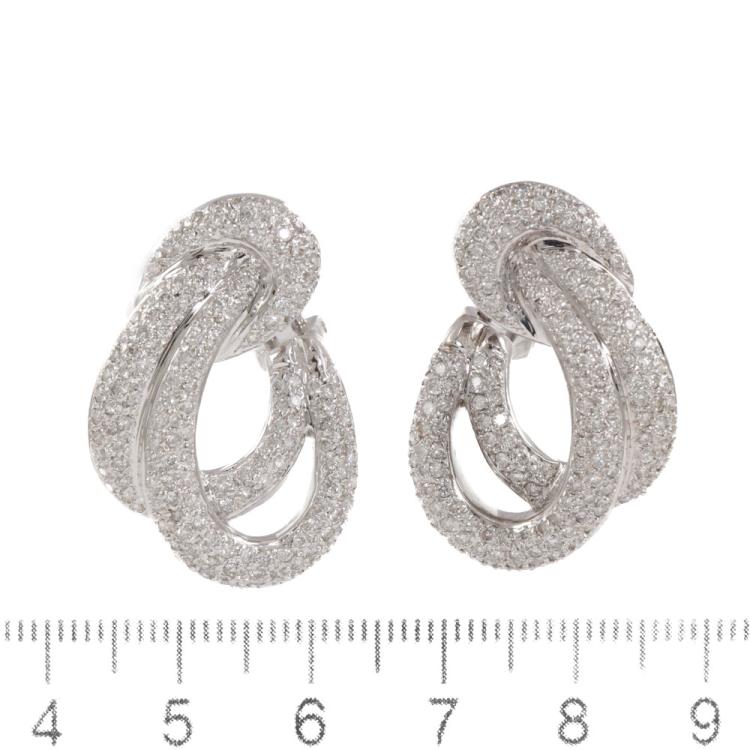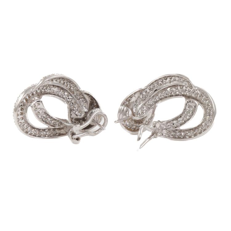Diamond clip-on earrings (for pierced ears) with round Natural Diamonds totalling approximately 2.50ct (Estimated grading: G-H SI). 18ct white gold. Earring size: approximately 3.1cm x 1.9cm. Weight: 16.3g. (Pre-owned)