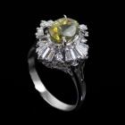 Chrysoberyl and Diamond ring with oval yellowish green Natural Chrysoberyl of 2.80ct (Note - Chrysoberyl with wear marks) and round & baguette cut Natural Diamonds totalling 0.71ct (Estimated grading: G VS-SI). Platinum 900. Ring size L 1/2. Band width: 2.4mm. Weight: 7.7g. (Pre-owned)