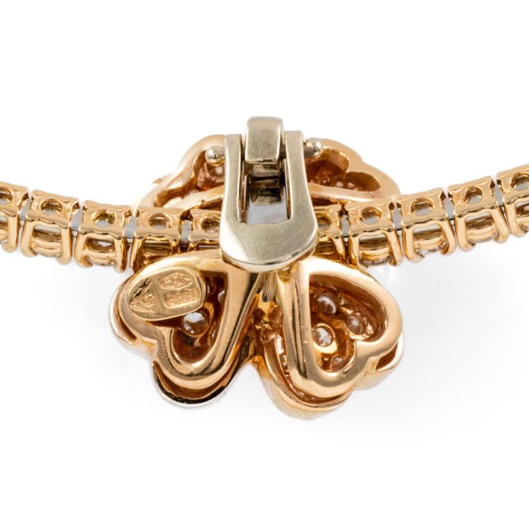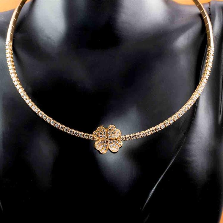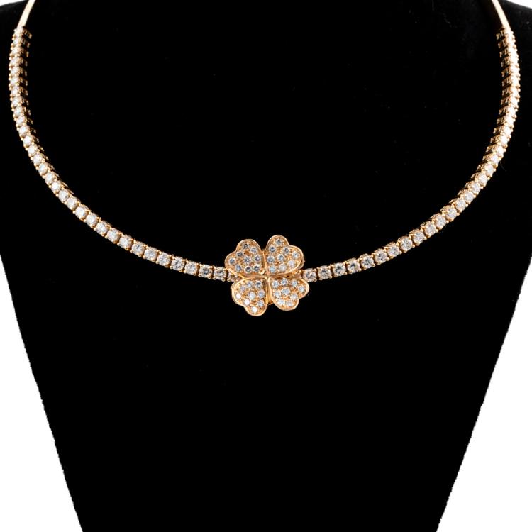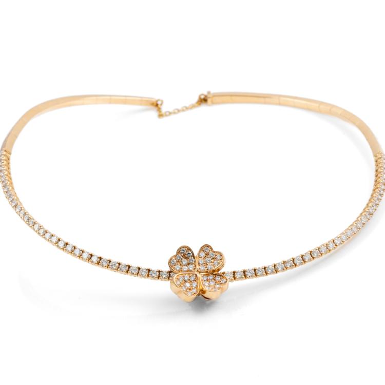 Diamond collar necklace with detachable clover design Diamond pendant. With round Natural Diamonds totalling approximately 3.00ct (Estimated grading: G VS). 18ct rose gold. Circumference: 34cm. Weight: 31.1g. With Certificate #418123. (Pre-owned)