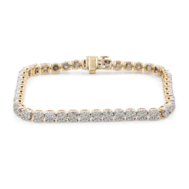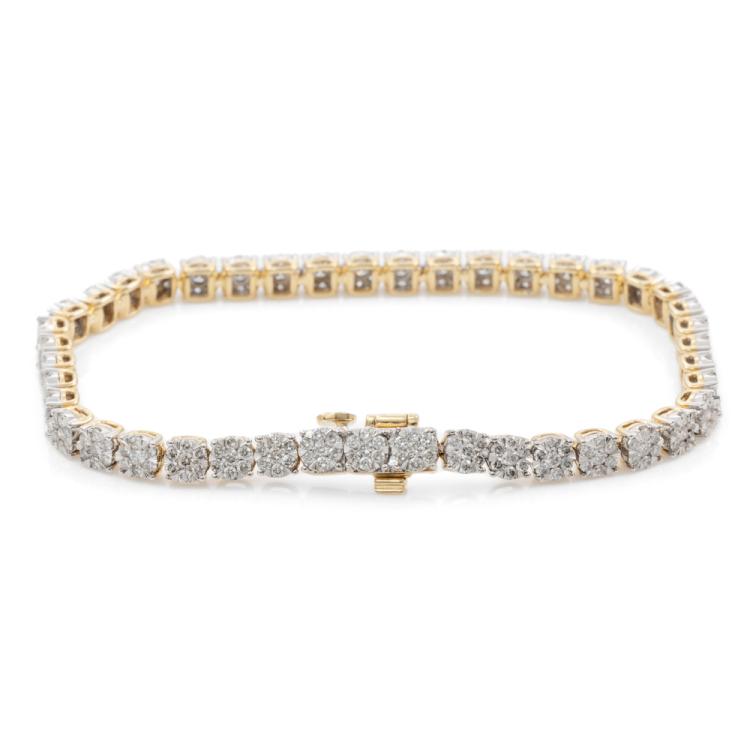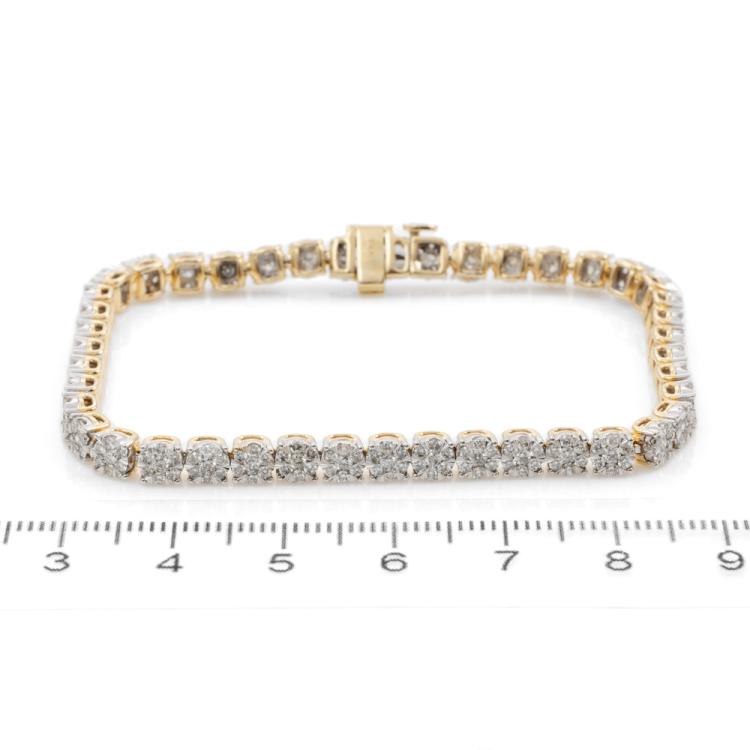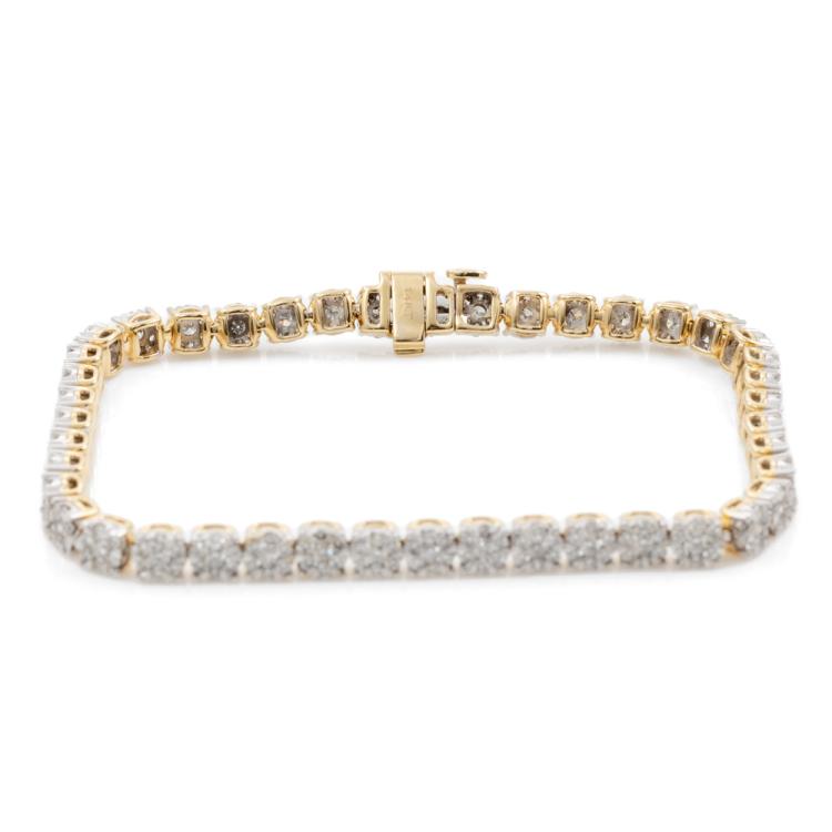 Diamond bracelet with 301 round Diamonds totalling 3.13ct (Estimated grading: I-J SI). 14ct yellow gold. Length: 18cm. Weight: 11.7g. With Certificate #416288. (New)