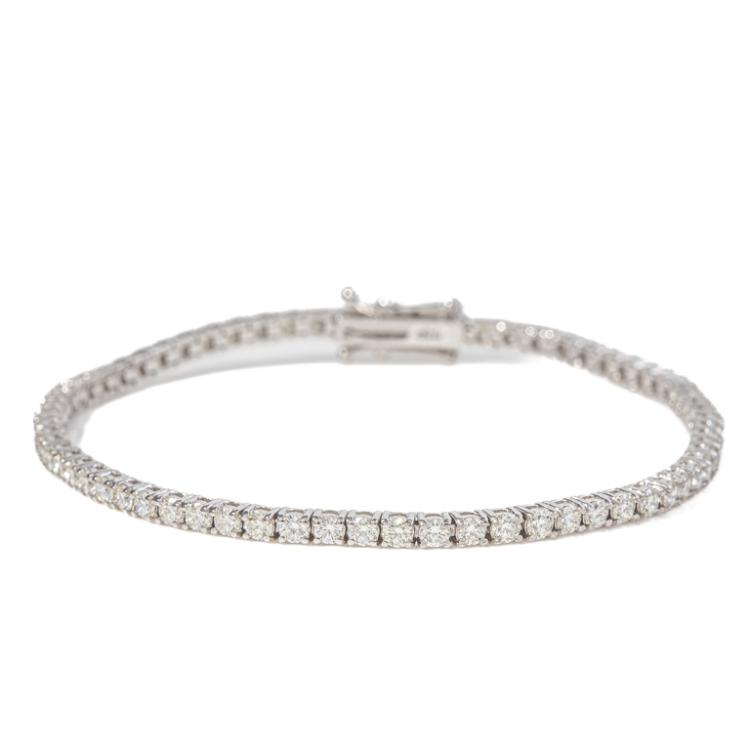 Diamond tennis bracelet with 69 round Natural Diamonds Totalling 3.30ct. (Estimated grading I-K VS-SI). 18ct white gold. Length: 18cm. Weight: 8.5g. With Valuation Certificate 418942 (New)