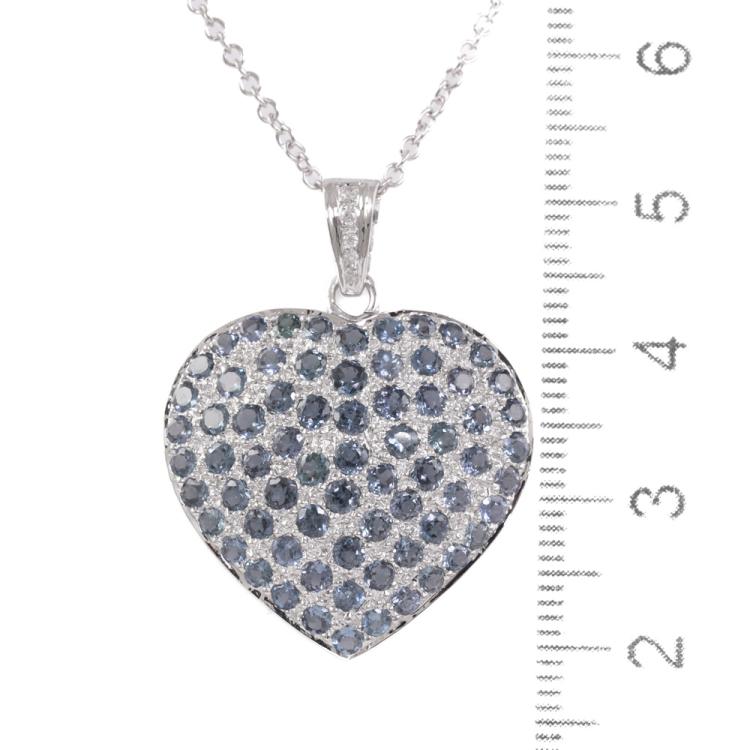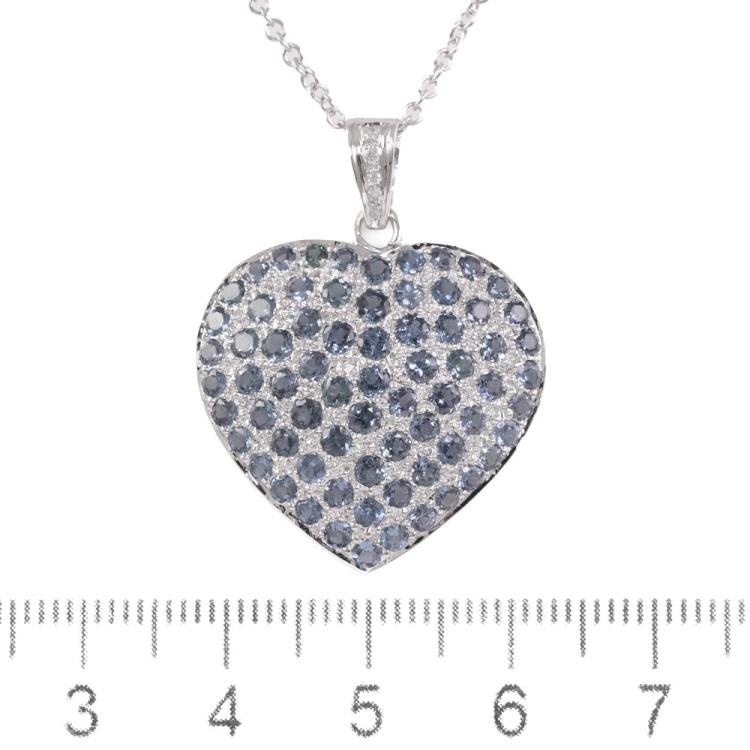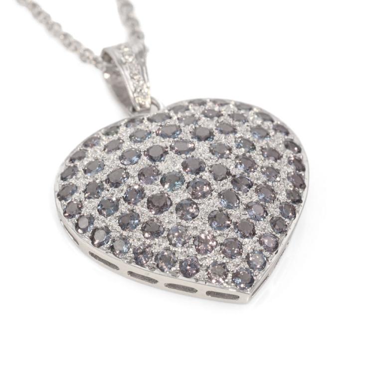 Garnet and Diamond pendant with round colour change Natural Garnets (colour change from greenish blue to light violet) totalling 3.67ct and round Natural Diamonds totalling 0.03ct. 18ct white gold with 45cm 18ct white gold chain. Weight: 7.5g. (Pre-owned)
