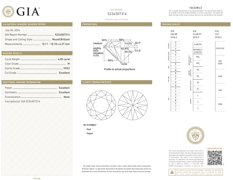 A loose round brilliant cut Natural Diamond of 4.05ct (with GIA report graded as M VVS2 #5234307314). (New)
