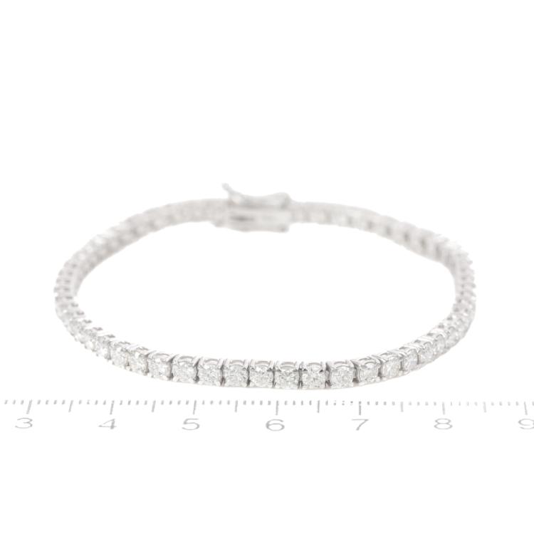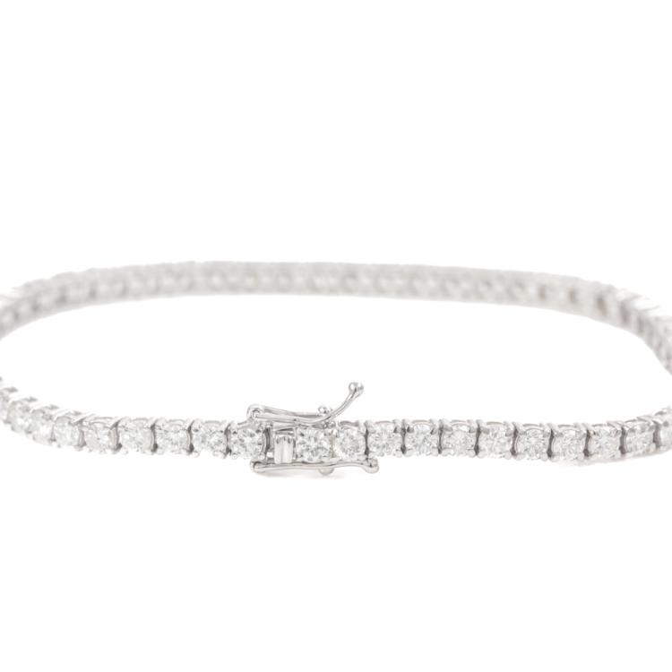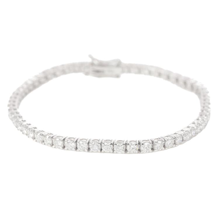 Diamond tennis bracelet with 57 round Natural Diamonds totalling 4.72ct (Estimated grading: G-H VS). 18ct white gold. Length: 18cm. Weight: 9.9g. With Valuation Certificate #420015. (New)