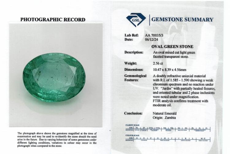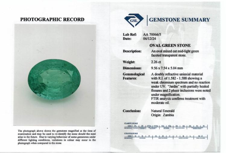 A loose parcel of 2 oval shape Natural Zambian Emeralds totalling 4.82ct. With GSL Gemstone Summary #AA70035/3 & #AA70066/5. (As New)