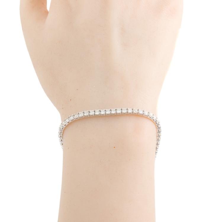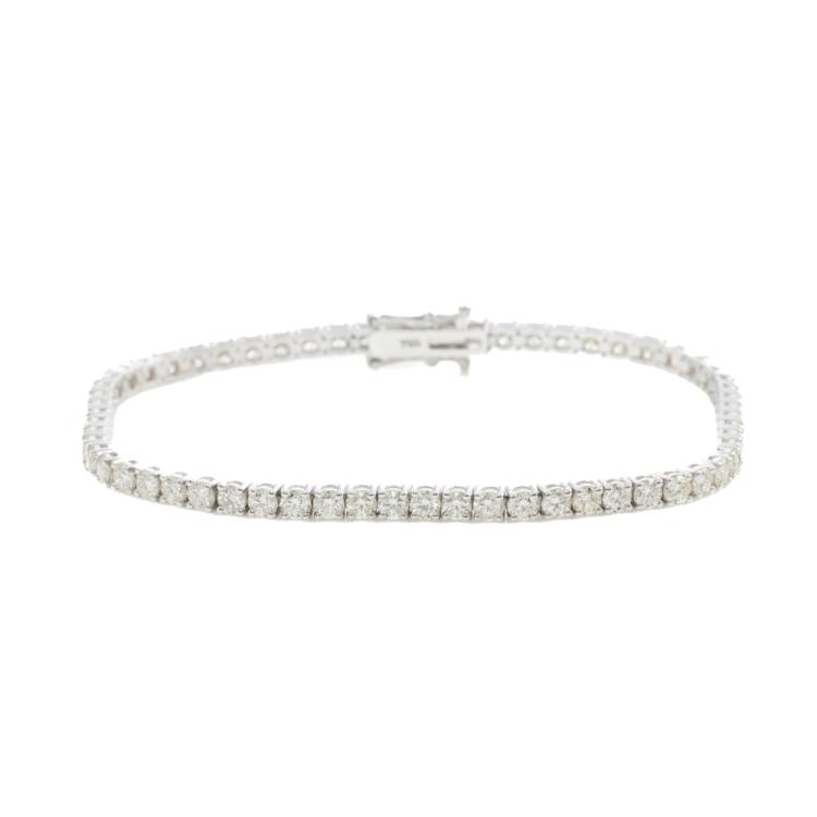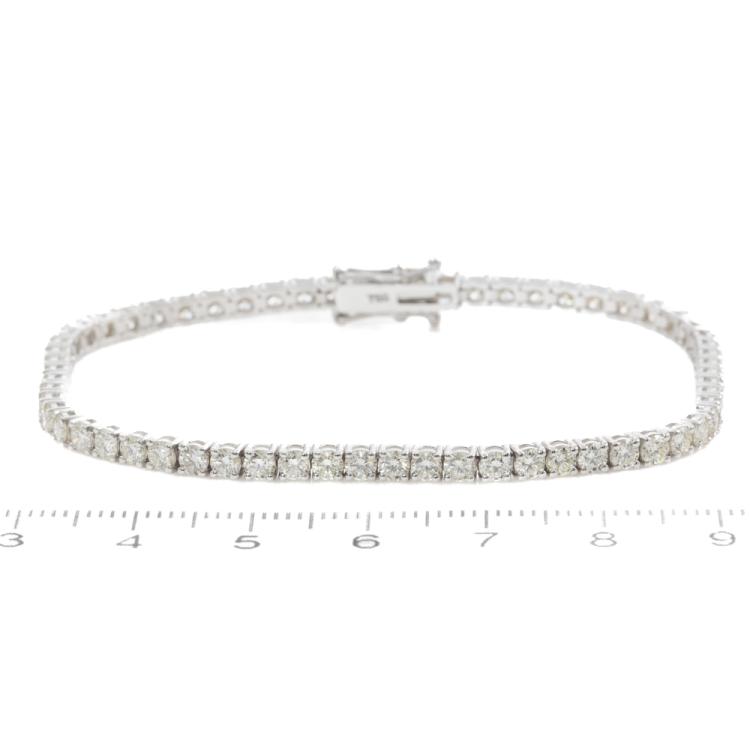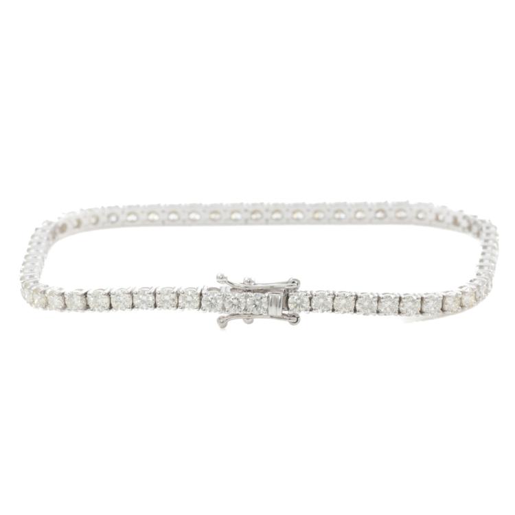 Diamond tennis bracelet with 62 round natural Diamonds totalling 4.93ct (Estimated grading: I-J SI). 18ct white gold. Length: 18cm. Weight: 9.6g. With Valuation Certificate #418806. (New)
