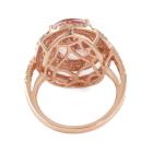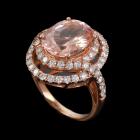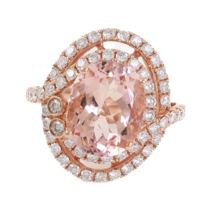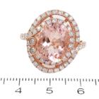 Morganite and Diamond ring with oval Natural Morganite of 5.25ct and round Natural Diamond totalling 1.32ct (Estimated grading: H-I SI-P1). 14ct rose gold. Ring size N1/2 - ring resizing is not recommended. Weight: 7.1g. With Certificate #415879. (As new)