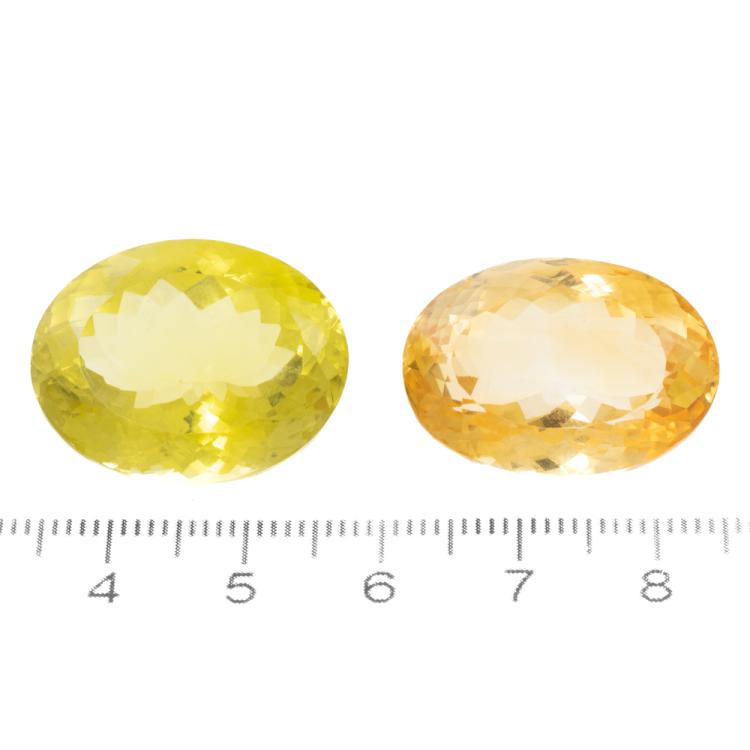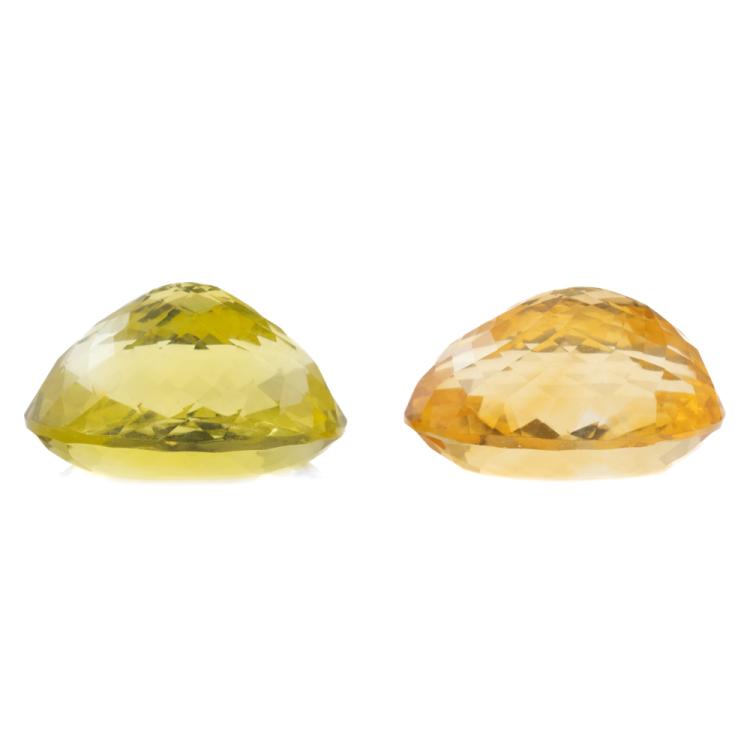 A parcel of 2 Loose Mixed Gemstones with 1 oval shape natural Citrine of 32.64ct approximately 24.0mm x 16.7mm x 13.5mm and 1 oval shape natural Lemon Quartz of 34.40ct approximately 23.6mm x 18.7mm x 13.3mm. (New)