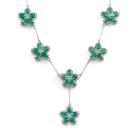 Emerald and Diamond floral motifs necklace with oval shape Natural Zambian Emeralds totalling 6.78ct and round natural Diamonds totalling 1.37ct (Estimated grading: G-H VS-SI). 14ct white gold. Adjustable Length: 43.5cm - 45.0cm. Weight: 12.6g. with GSL Description #AA69494/5. (As New)