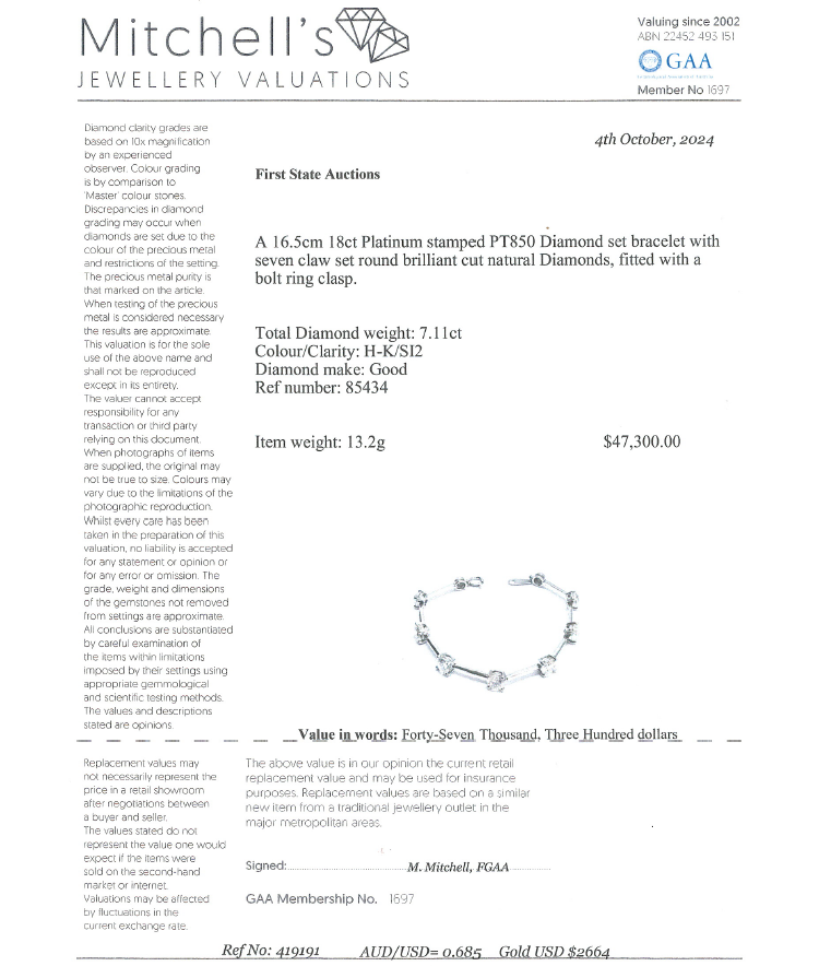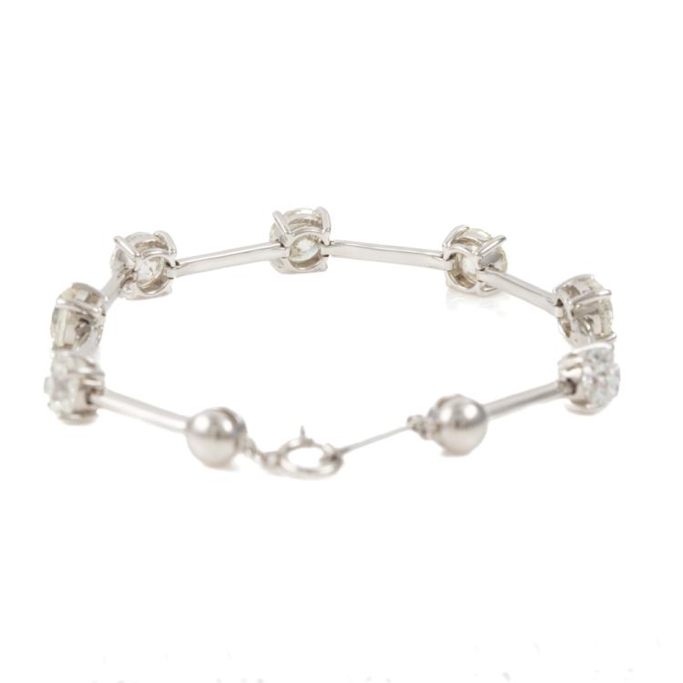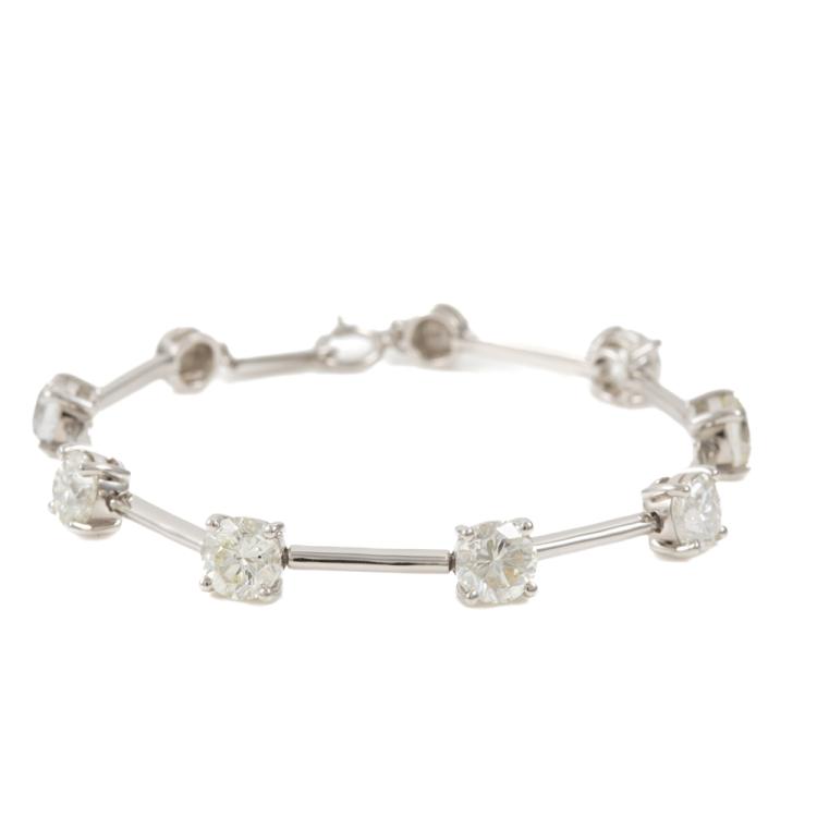 Diamond bracelet with 7 round Natural Diamonds totalling 7.11ct (Estimated grading: H-K SI2). Platinum-850. Length: 16.5cm. Weight: 13.2g. With Certificate #419191. (Pre-owned)