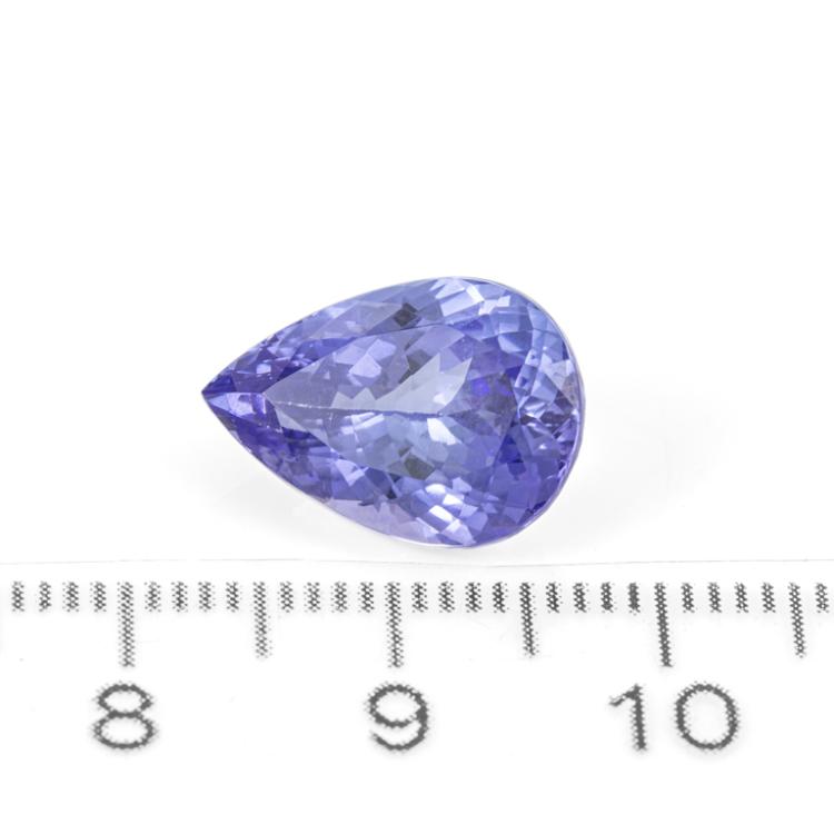 A loose pear shape natural Tanzanite of 7.32ct. Dimensions: 14.7mm x 10.3mm 7.3mm. (As new)