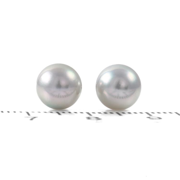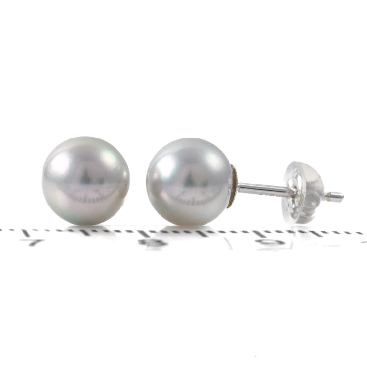 Pearl stud earrings with Akoya Pearls of 7.7mm. 18ct white gold & 14ct white gold and silicon backs. Weight: 1.8g. (Pre-owned)