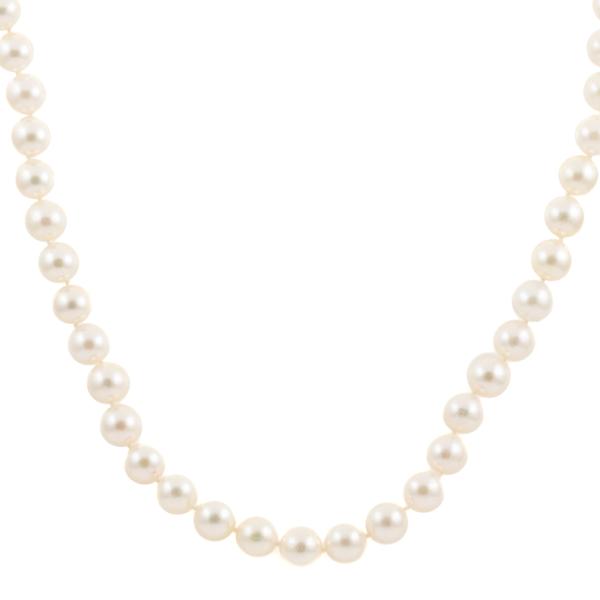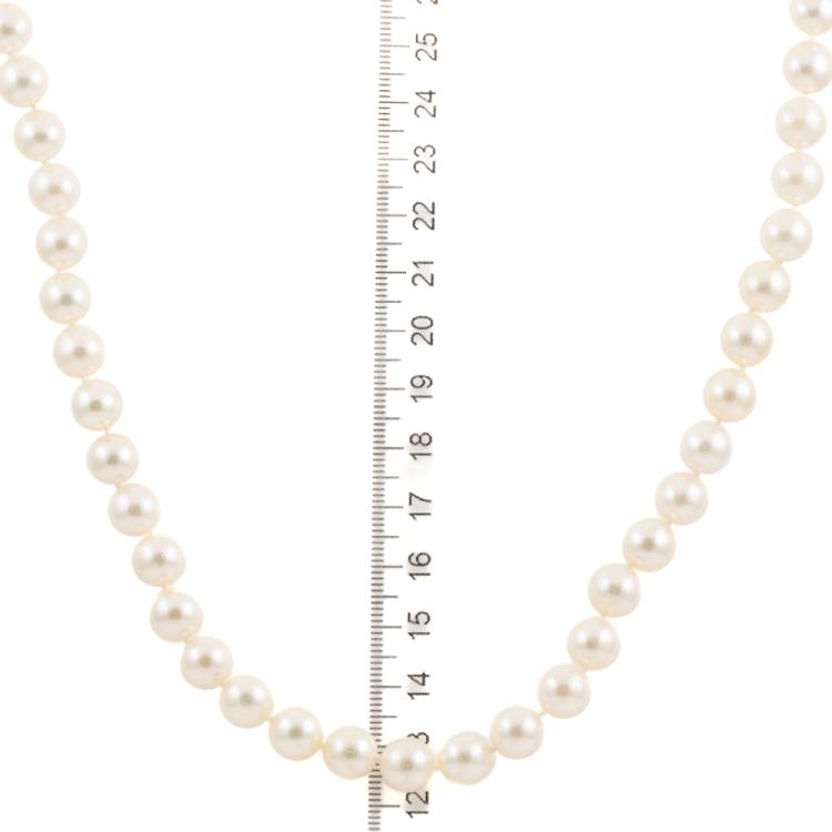 Pearl necklace with 48 Akoya Pearls of 8.5mm - 9.0mm. 14ct white gold ball clasp. Length: 47cm. Weight: 46.1g. (Pre-owned)