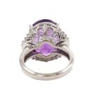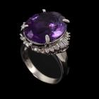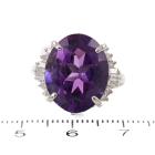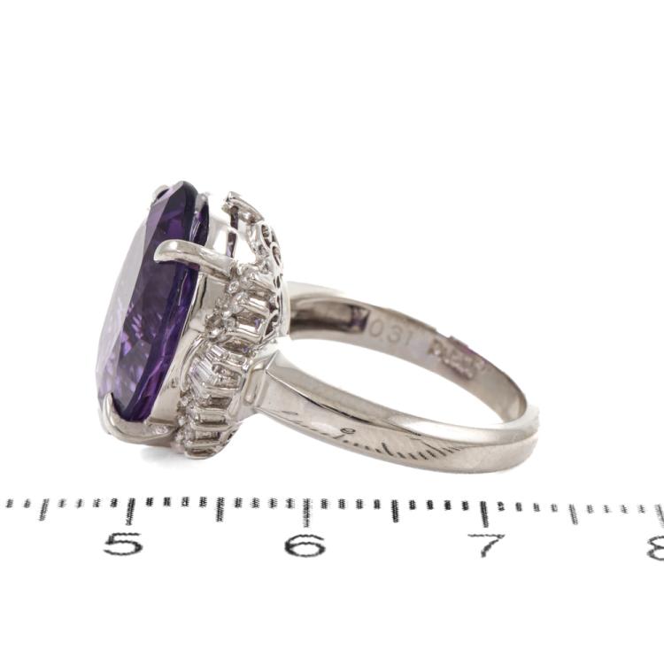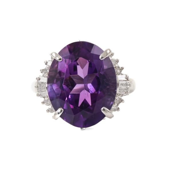 Amethyst and Diamond ring with oval shape Natural Amethyst of 8.78ct and round & baguette cut Natural Diamonds totalling 0.31ct (Estimated grading: G-H SI). Platinum-900. Ring size I½. Band width: 2.8mm - 3.8mm. Weight: 10.2g (Pre-owned)